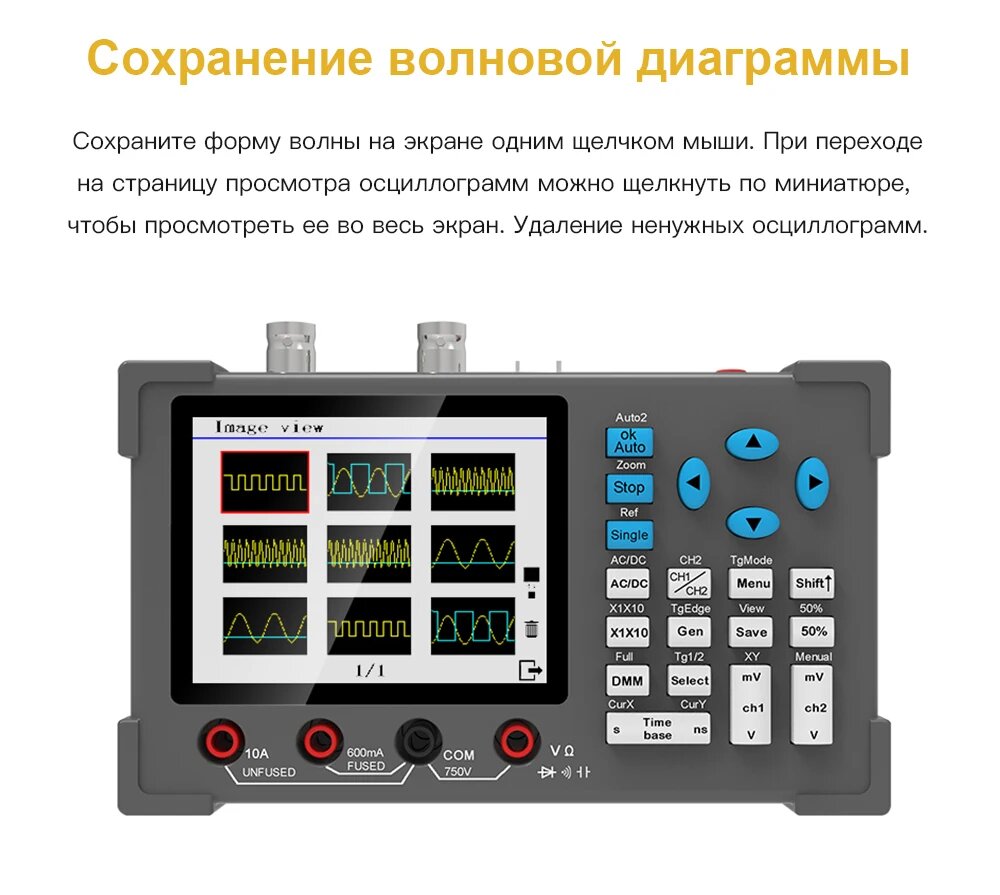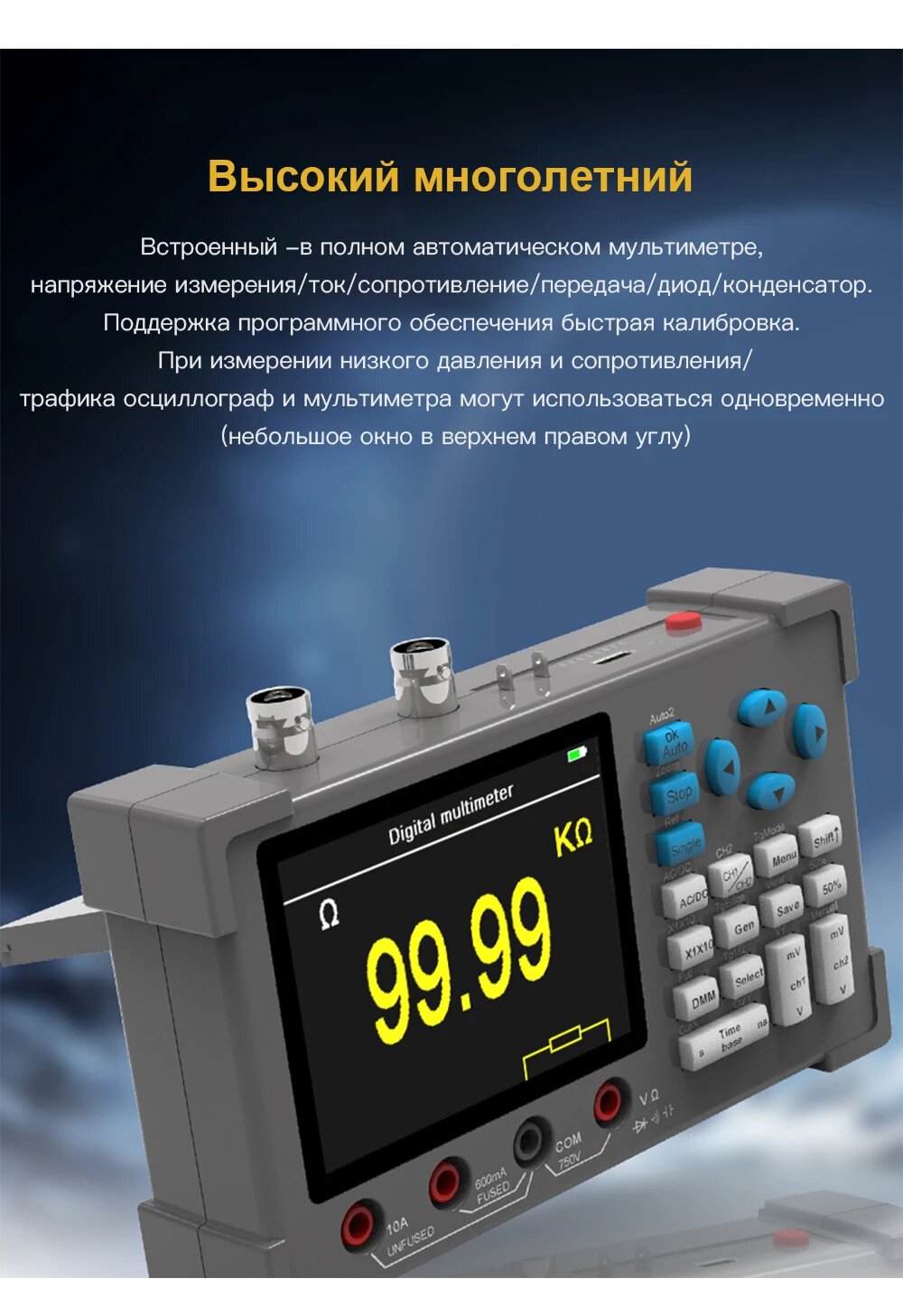 Цифровой осциллограф 3 в 1, портативный мультиметр, генератор сигналов со встроенным аккумулятором