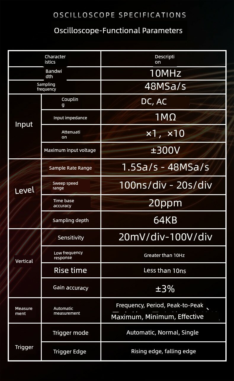 Осциллограф с ЖК-дисплеем 2,8 дюйма, портативный, 10МГц, 48МСэм/с, функция хранения данных