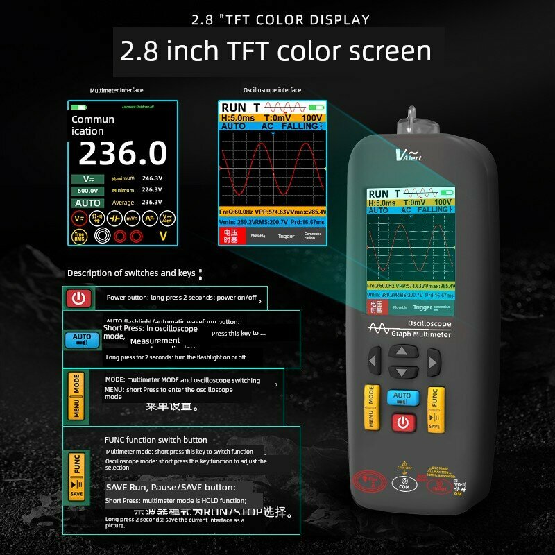 Цифровой осциллограф 3 в 1, портативный мультиметр, генератор сигналов со встроенным аккумулятором