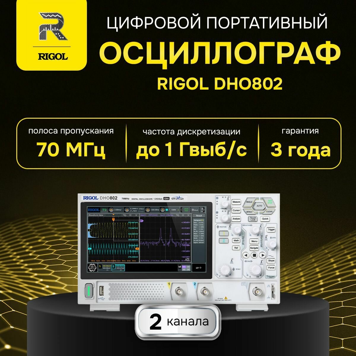 Купить RIGOL DHO802 цифровой осциллограф, полоса пропускания 70 МГц, 2 канала, Госреестр СИ