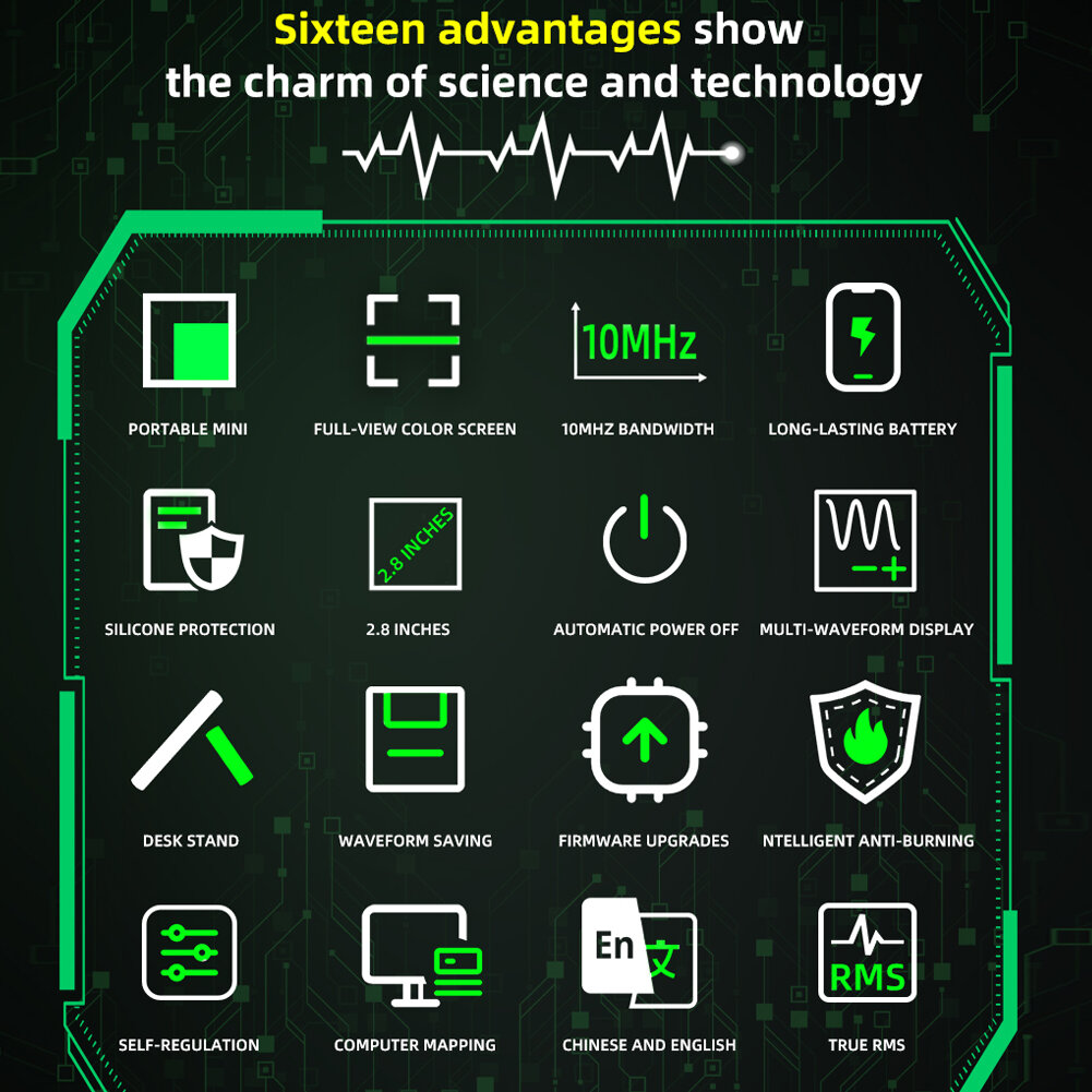 Осциллограф с ЖК-дисплеем 2,8 дюйма, портативный, 10МГц, 48МСэм/с, функция хранения данных интересное: