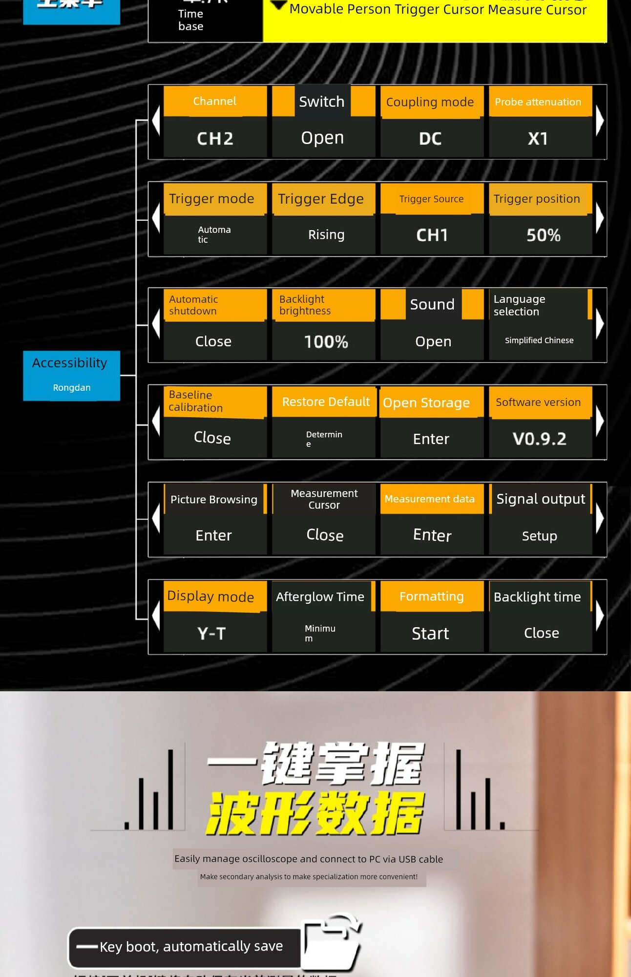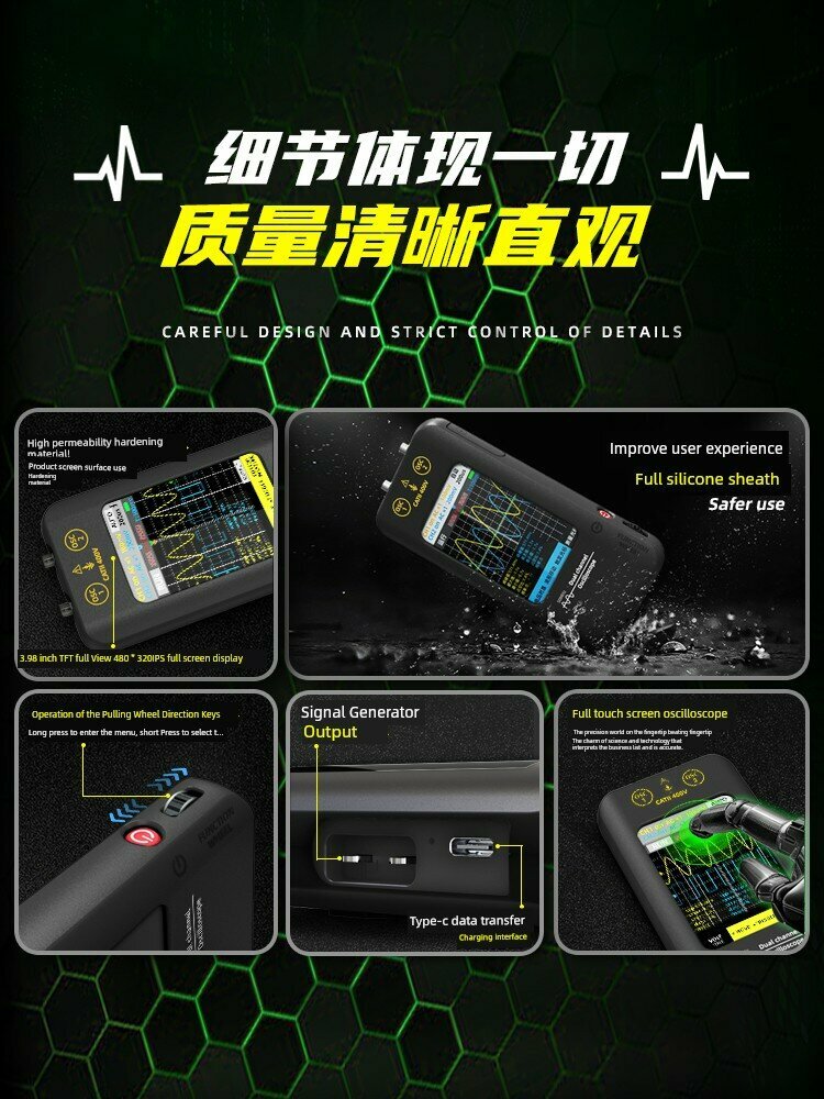 Цифровой осциллограф 3 в 1, портативный мультиметр, генератор сигналов со встроенным аккумулятором