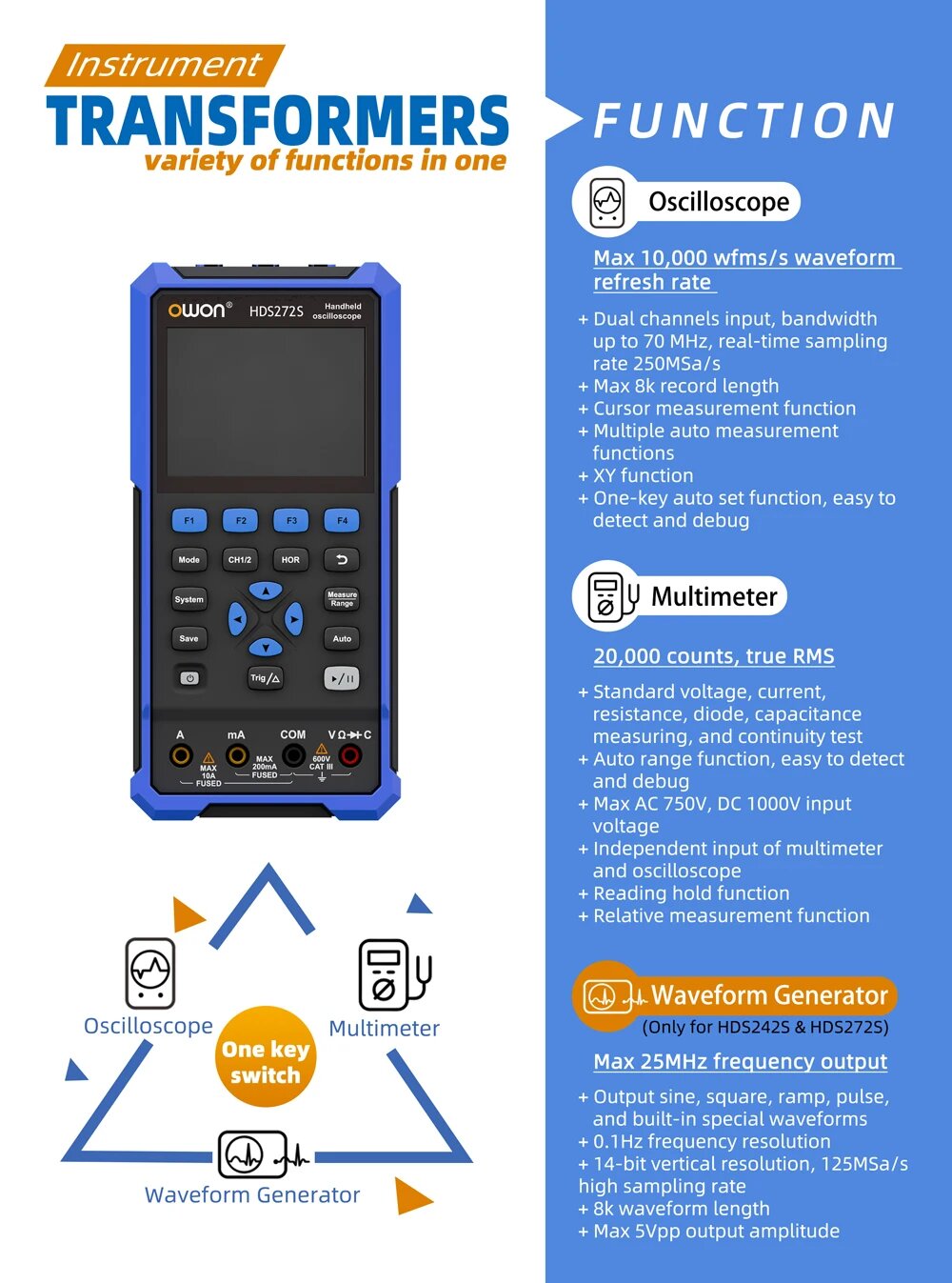 Oсциллограф генератор мультиметр HDS271 OWON 70 МГц портативный одноканальный автономный