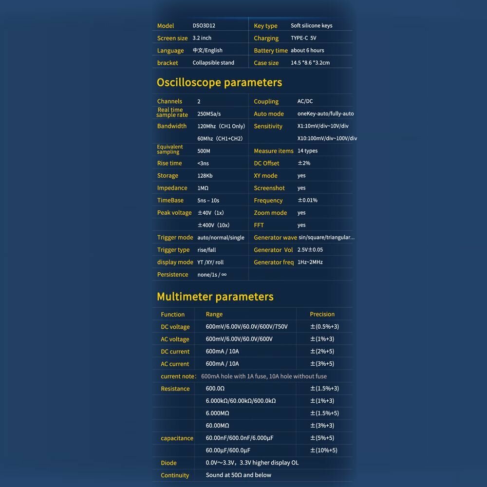 Цифровой осциллограф 3 в 1, портативный мультиметр, генератор сигналов со встроенным аккумулятором