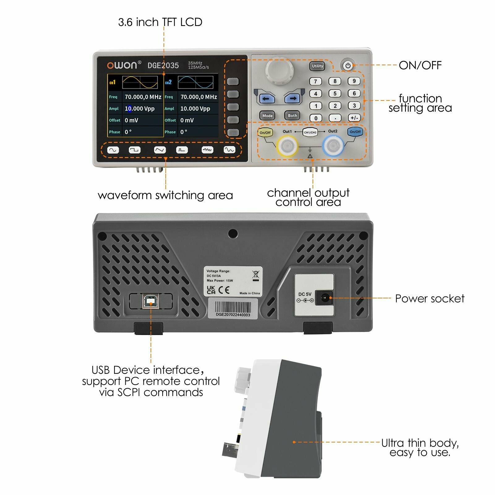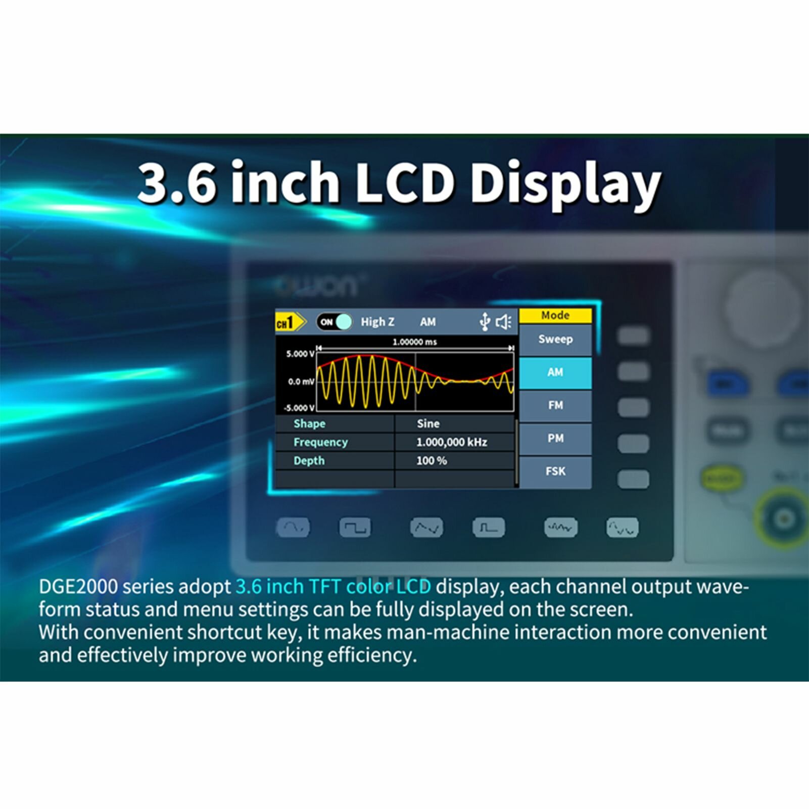 Цифровой осциллограф Owon DGE2035, 2 канала, 35МГц, 125MS/s, 3.6 дюйма LCD, портативный интересное: