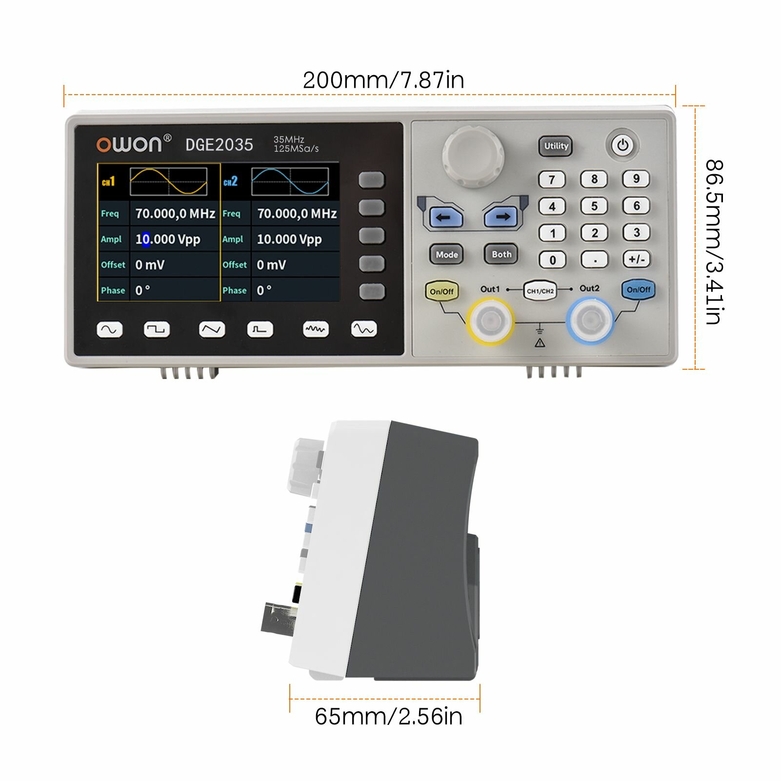 Купить Цифровой осциллограф Owon DGE2035, 2 канала, 35МГц, 125MS/s, 3.6 дюйма LCD, портативный