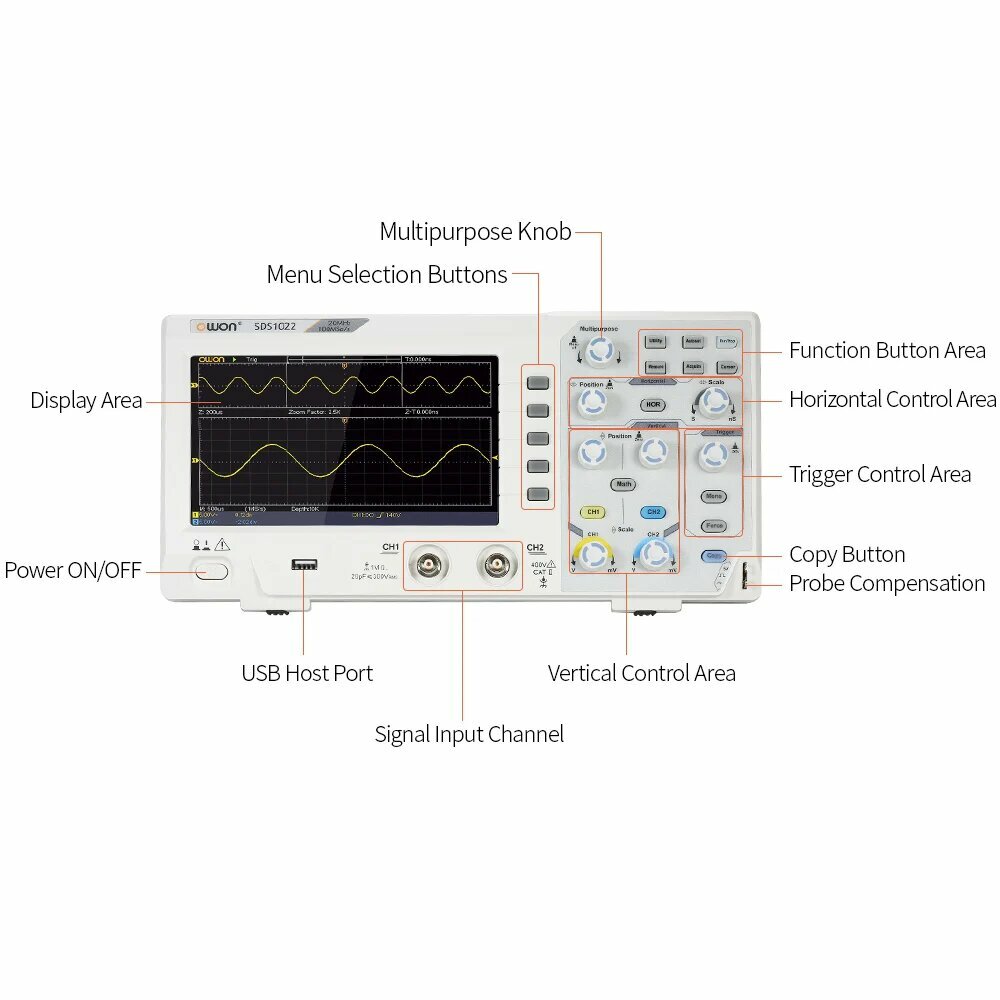Купить Осциллограф Owon SDS1022, 2 канала, 100 Мб/с, 1 ГГц/с, 20 МГц