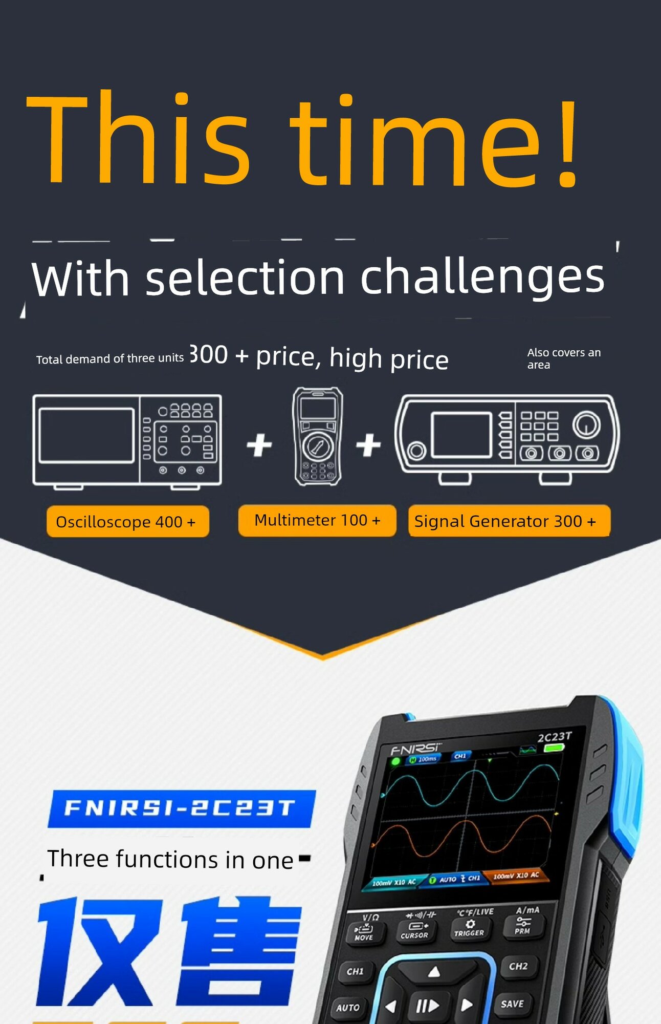 Цифровой осциллограф 3 в 1, портативный мультиметр, генератор сигналов со встроенным аккумулятором