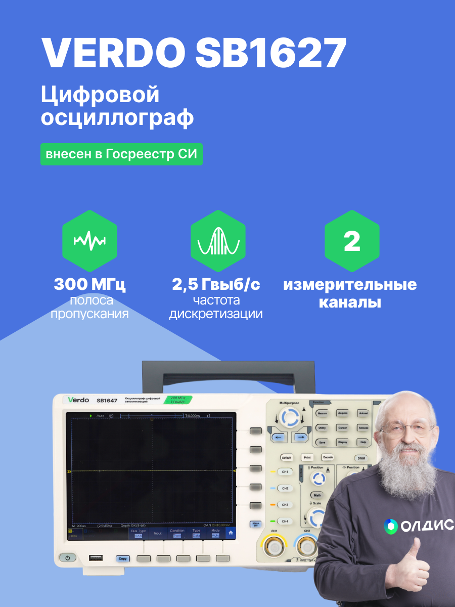 VERDO SB1627 Осциллограф цифровой 2 канала, 300МГц, 2,5 Гвыб/с Госреестр СИ интересное: