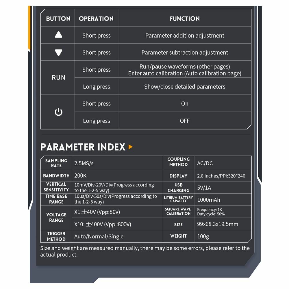 Осциллограф с ЖК-дисплеем 2,8 дюйма, портативный, 10МГц, 48МСэм/с, функция хранения данных