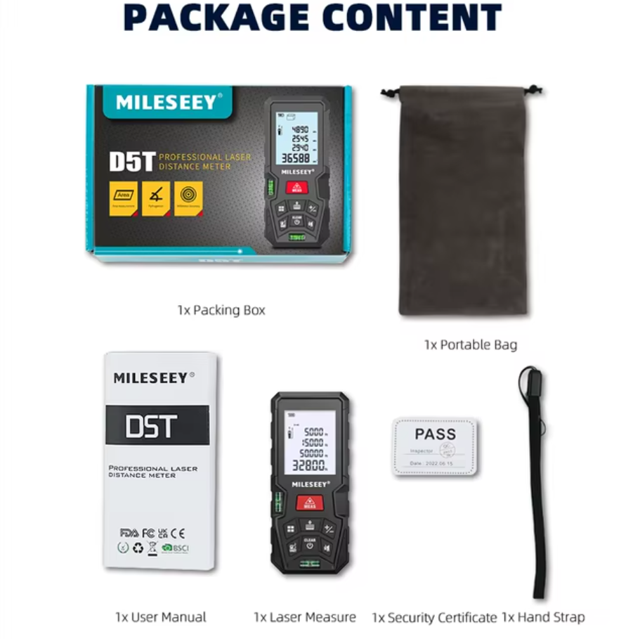 Лазерный дальномер Mileseey D5T 50м с Bluetooth, Приложение + Чехол интересное: