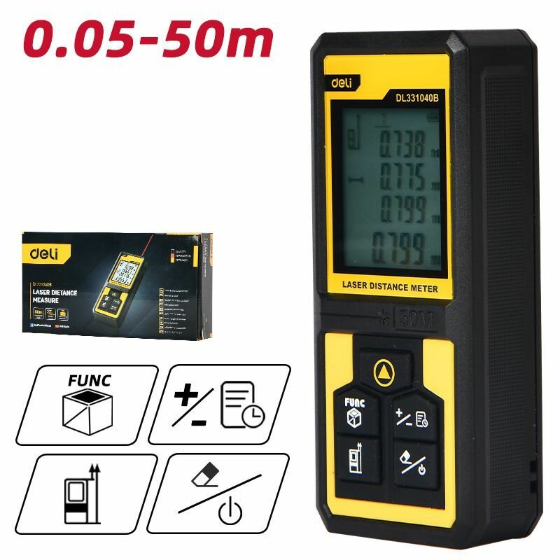 Купить Лазерный дальномер Deli DL331040B (Диапазон 0,05-50м, точность +/-3мм)