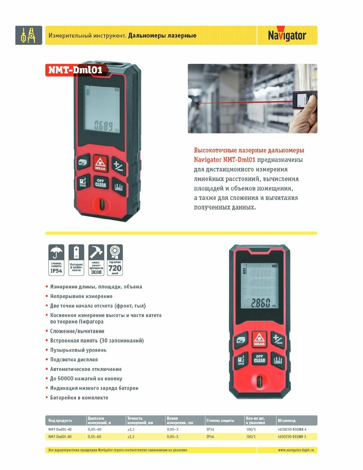 Высокоточный лазерный дальномер Navigator 93 288 NMT-Dml01-40 (40 м) интересное: