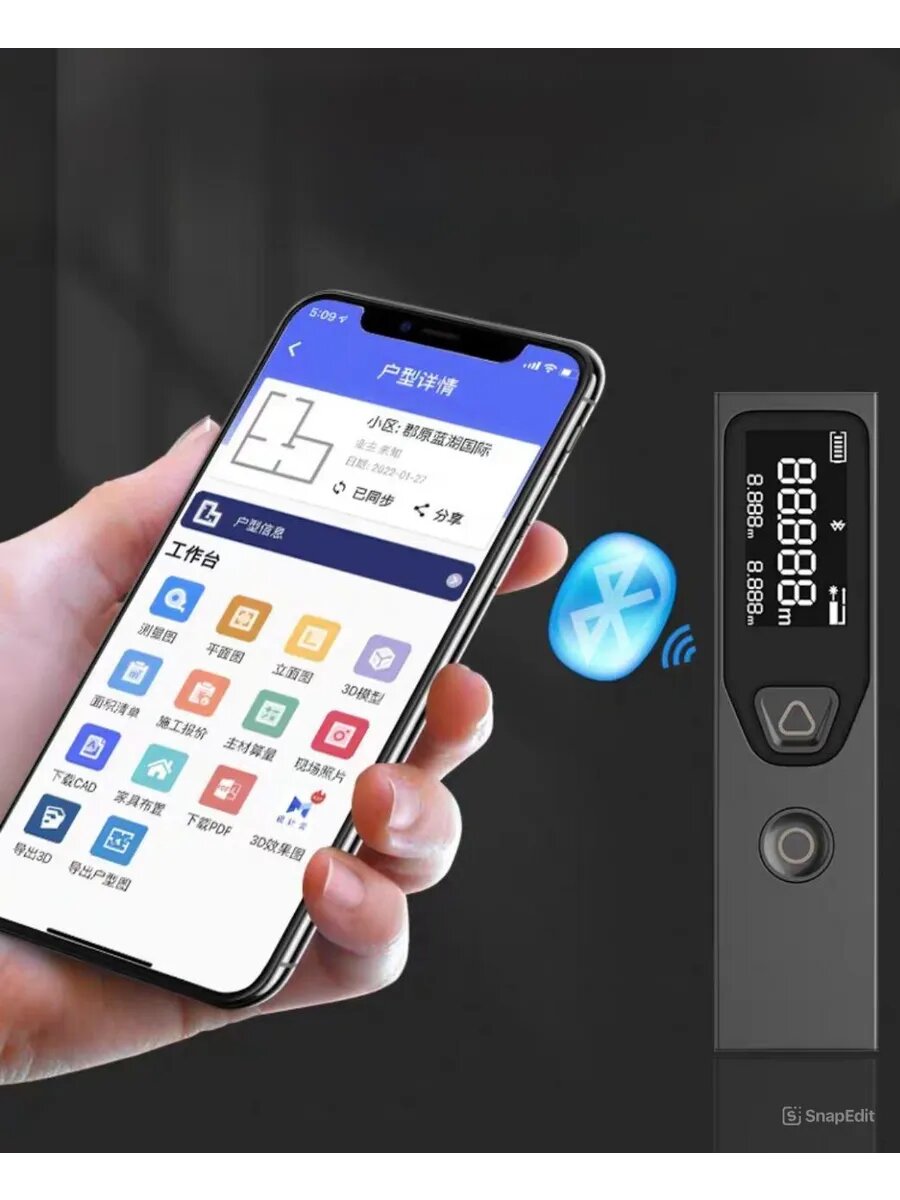 Лазерный дальномер, ЖК-дисплей, Bluetooth, 2 точки отсчета, черный интересное:
