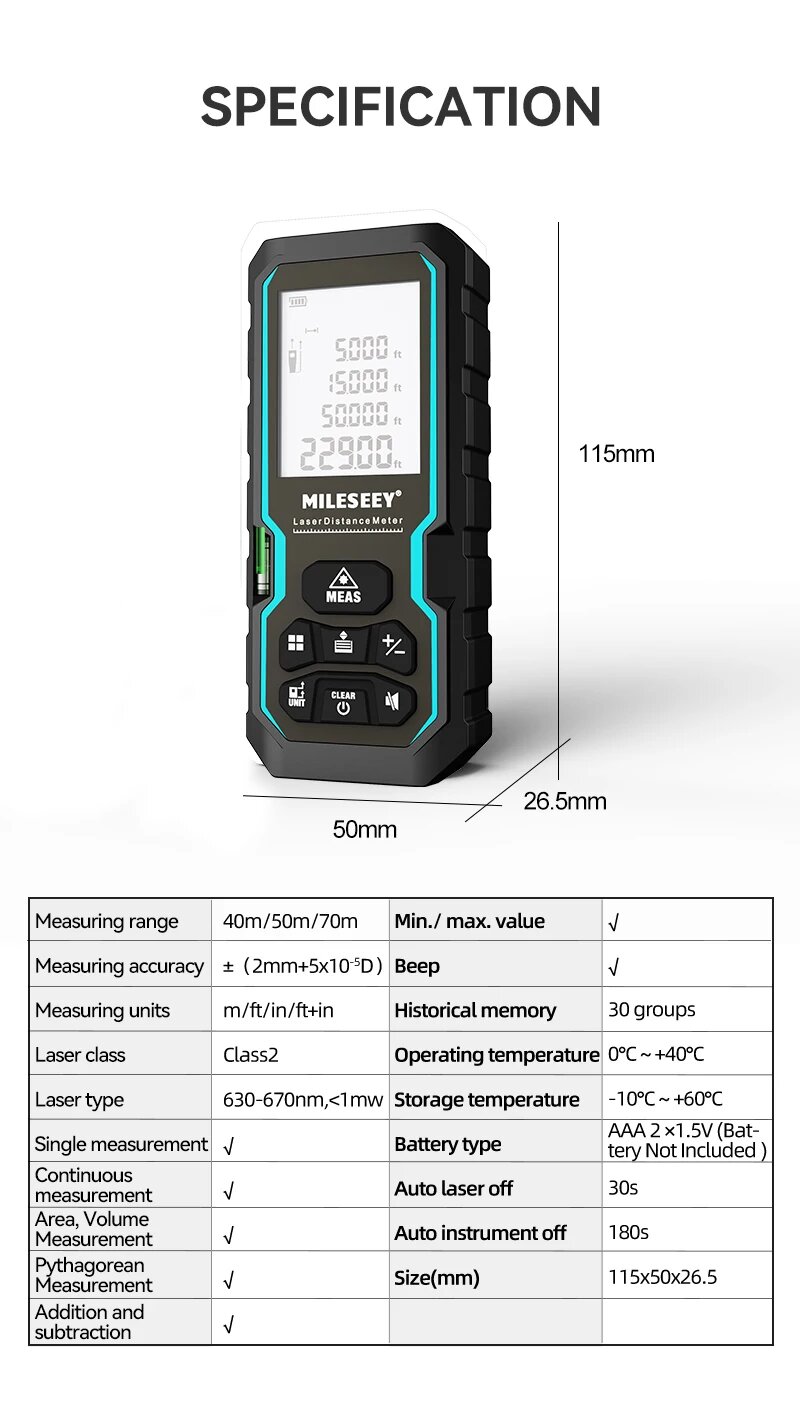 Лазерный дальномер Mileseey S6, S6 Non-Charging, 40 м интересное: