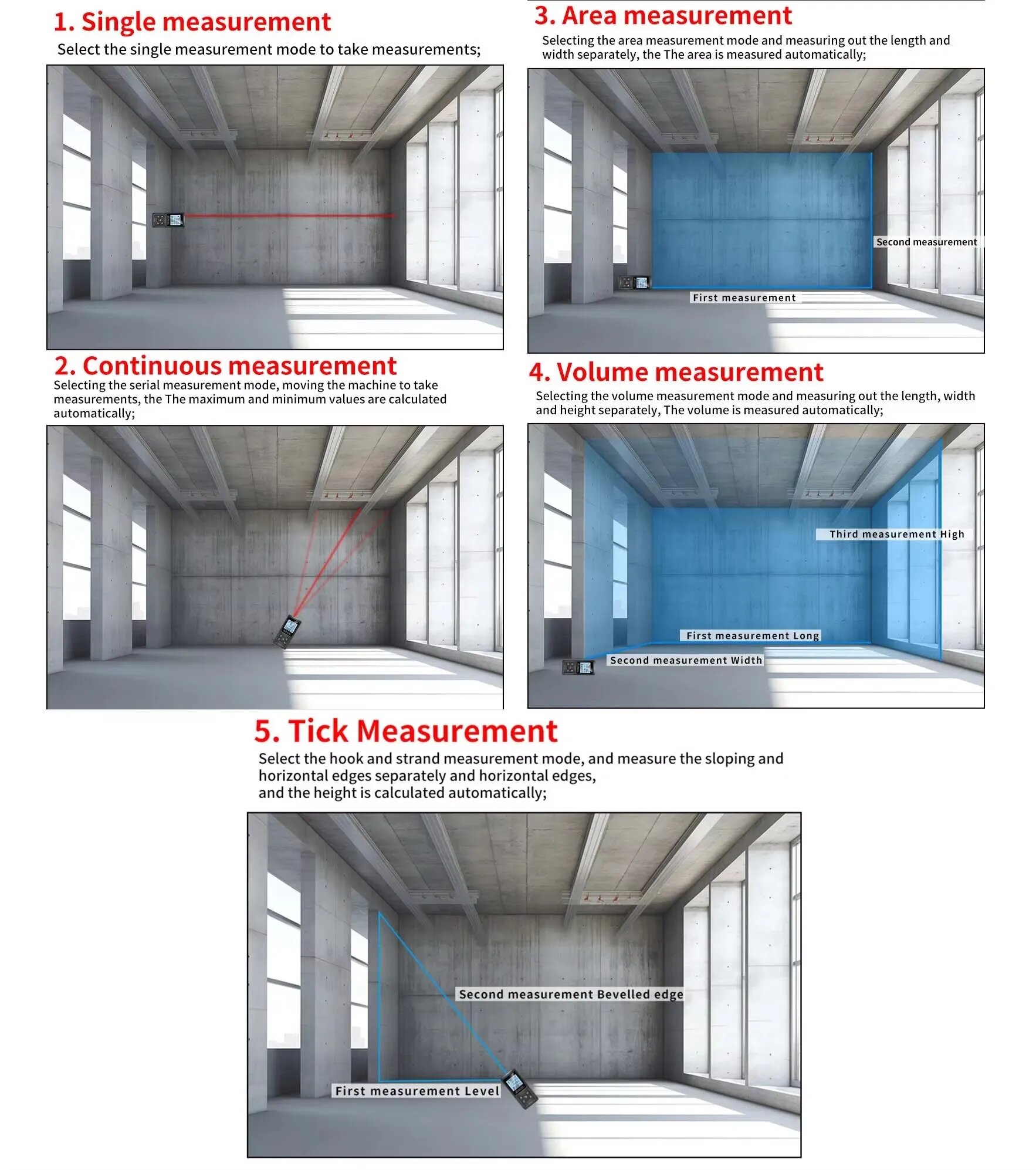 - Измерение расстояний, длин и углов наклона