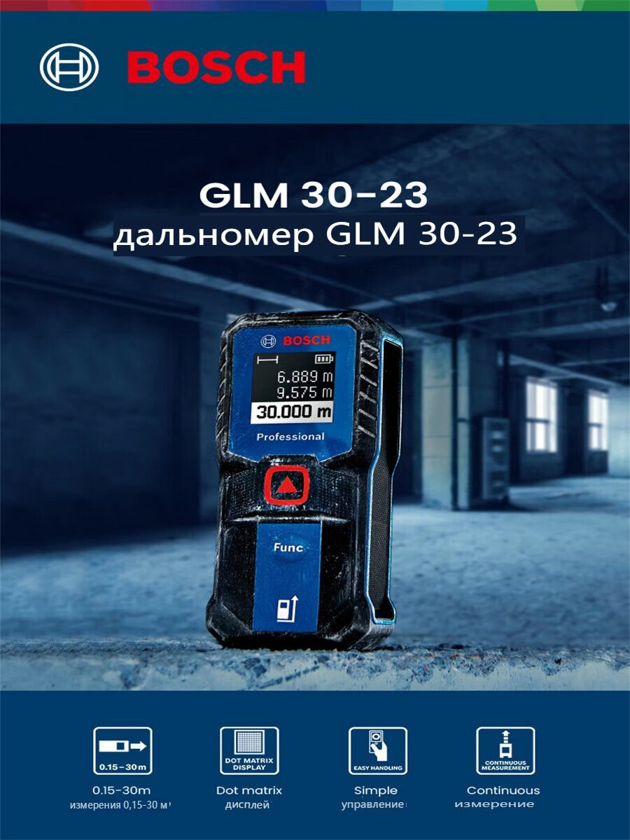 Лазерный дальномер Bosch "GLM 30-23", точность измерения 1,5мм, диапазон 30м интересное: