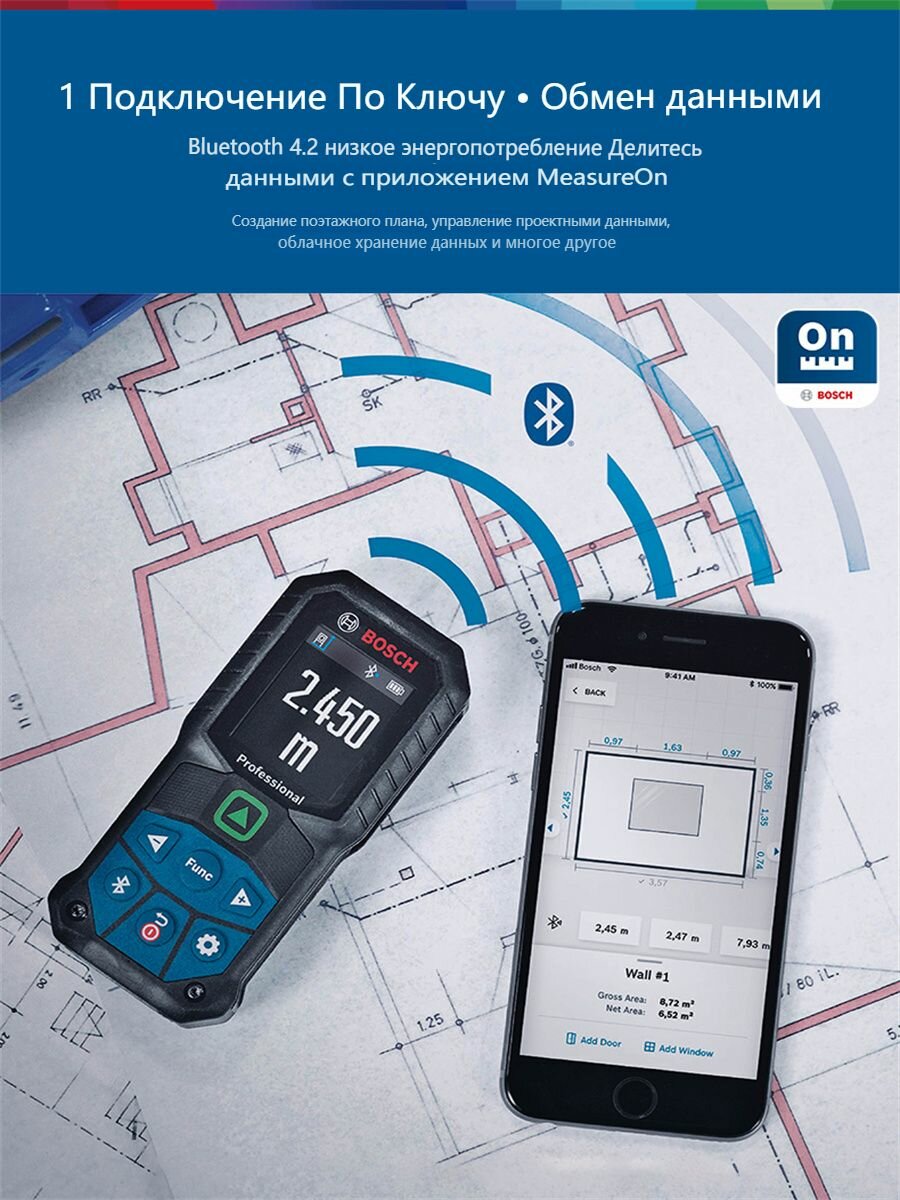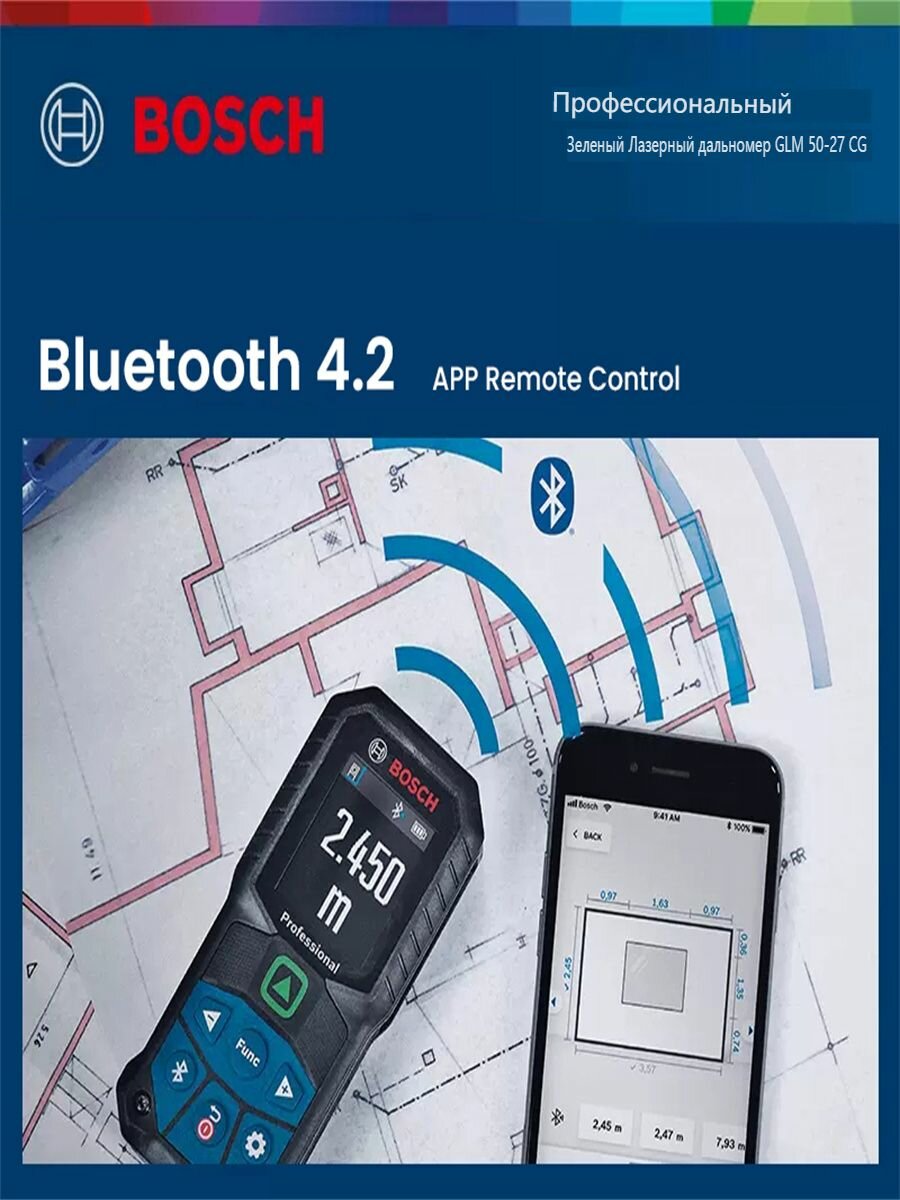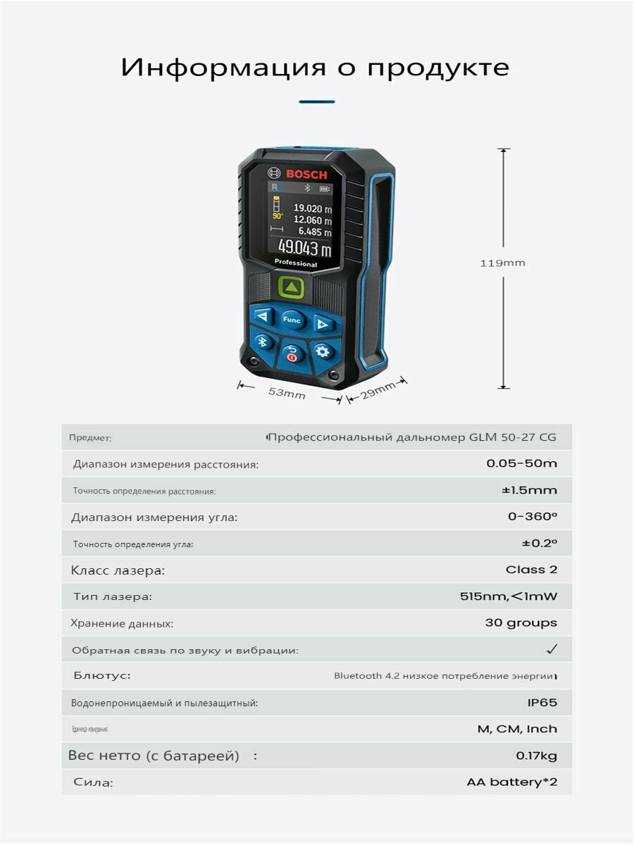Лазерный дальномер BOSCH GLM50-27CG, IP65, с Bluetooth, 50 метров интересное: