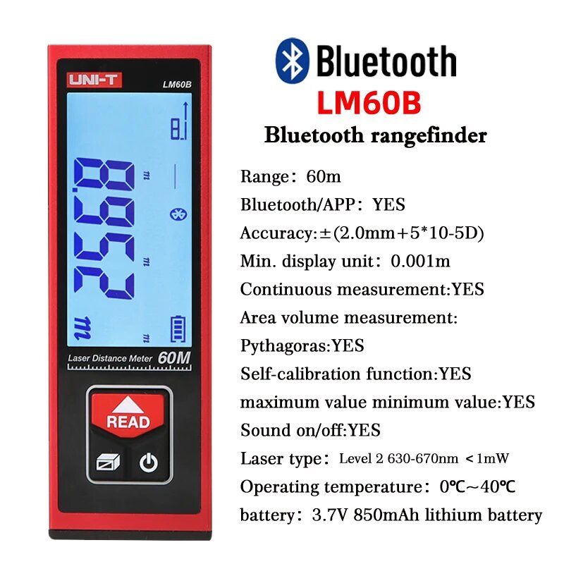 UNI-T LM60B/LM50B/LM40B лазерный дальномер, LM60B интересное: