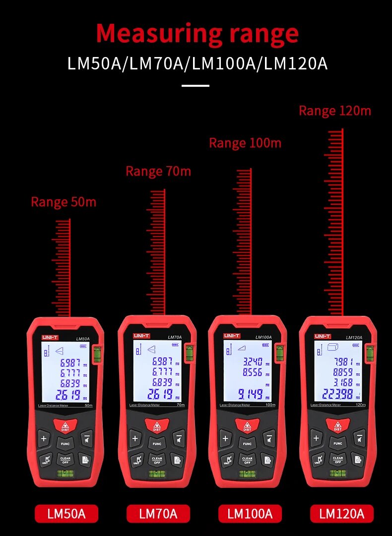 UNI-T Лазерный дальномер LM50A LM70A LM100A LM120A, 50m интересное: