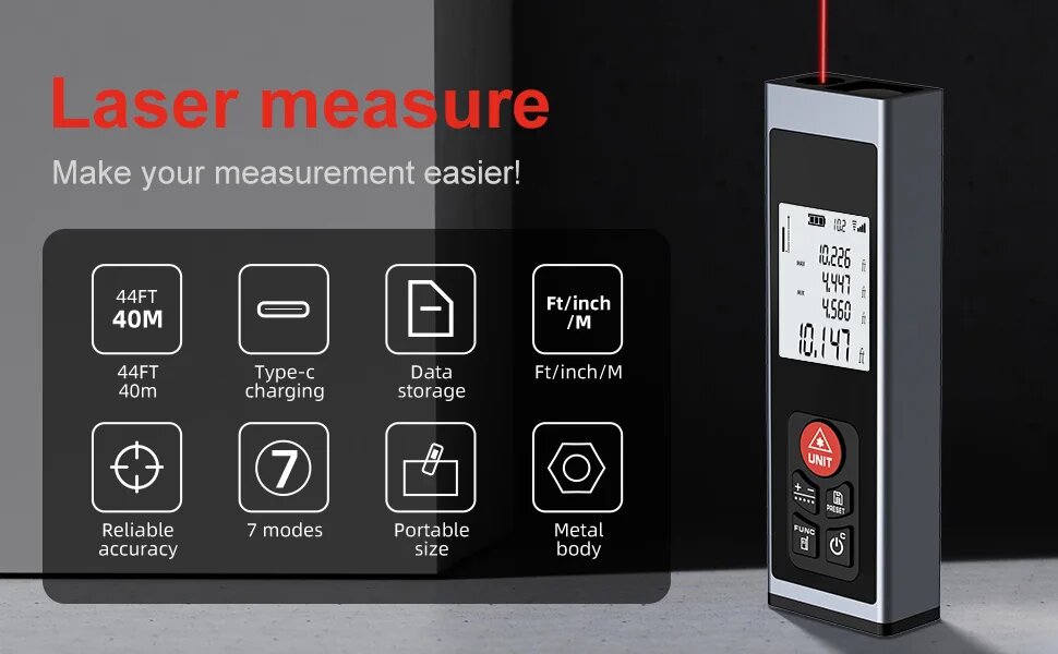 Nohawk Мини лазерная рулетка 40м, 40M интересное: