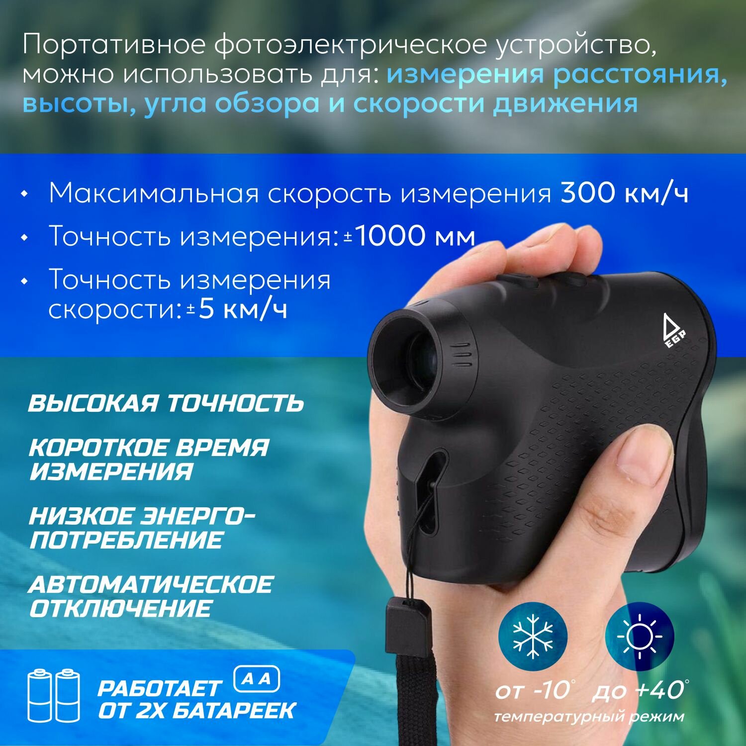 Лазерный дальномер 1500 метров / Дальномер EGP универсальный, для спорта, охоты, рыбалки и наблюдений