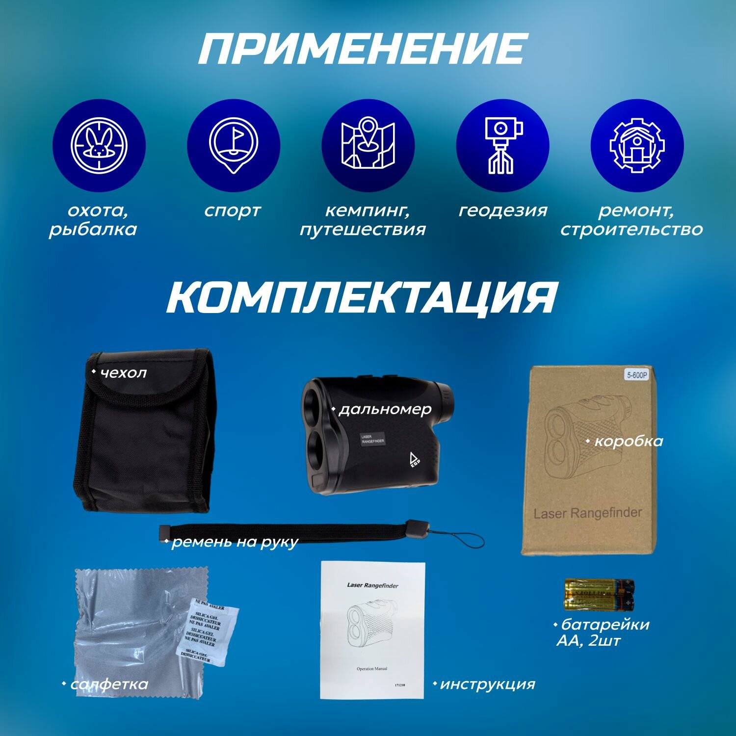 Лазерный дальномер 600 метров / Дальномер EGP универсальный, для спорта, охоты, рыбалки и наблюдений интересное: