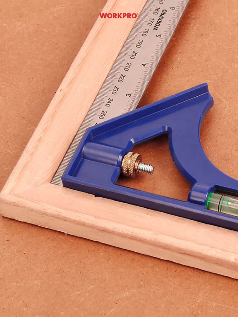 Угольник с уровнем 300мм WP264001, WORKPRO, цвет синий/серебристый интересное: