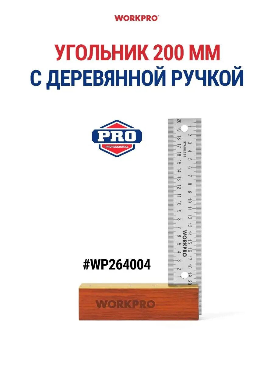 Угольник столярный 200 мм, WP264004, WORKPRO, цвет коричневый/серебристый интересное:
