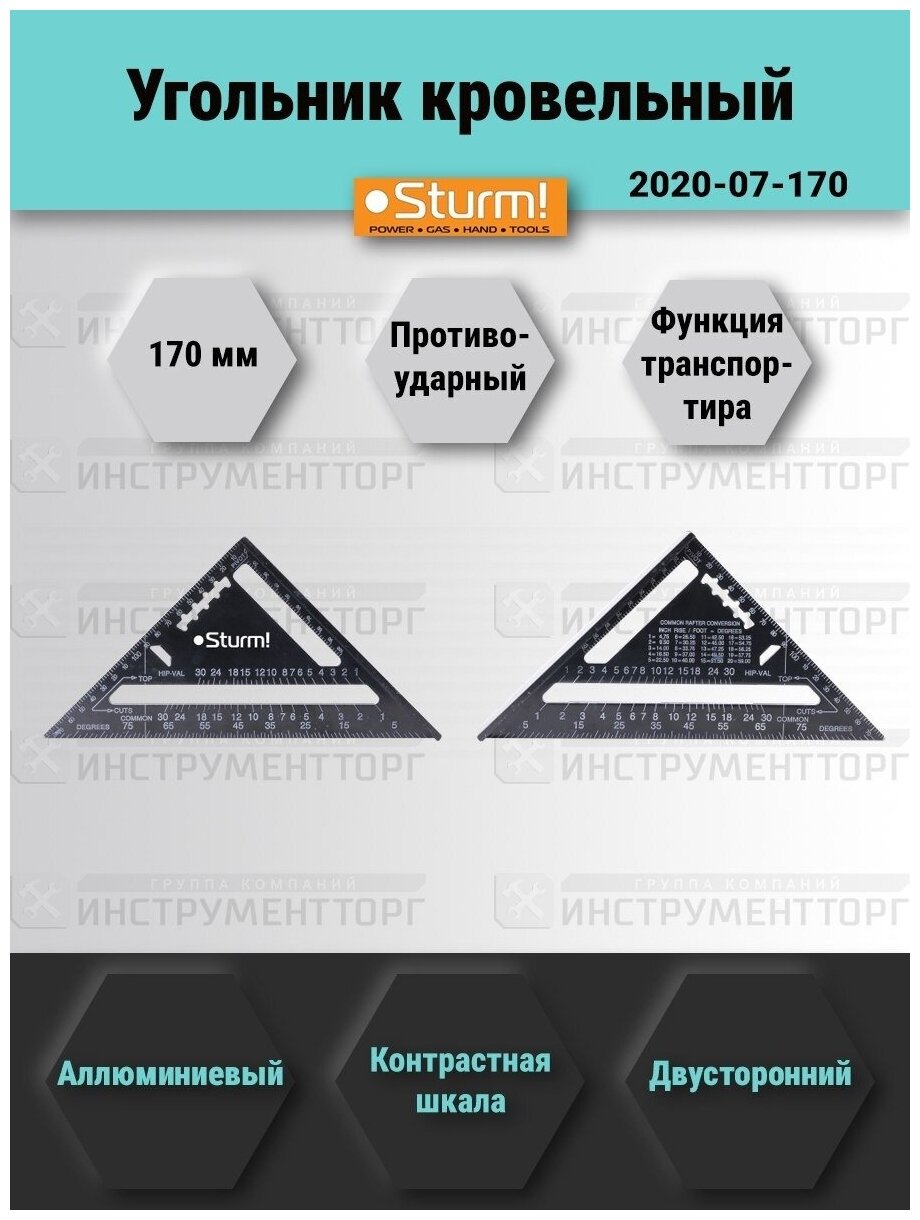 Угольник 170мм, алюминиевый сплав, чёрная оксидация, белая шкала, Sturm! интересное: