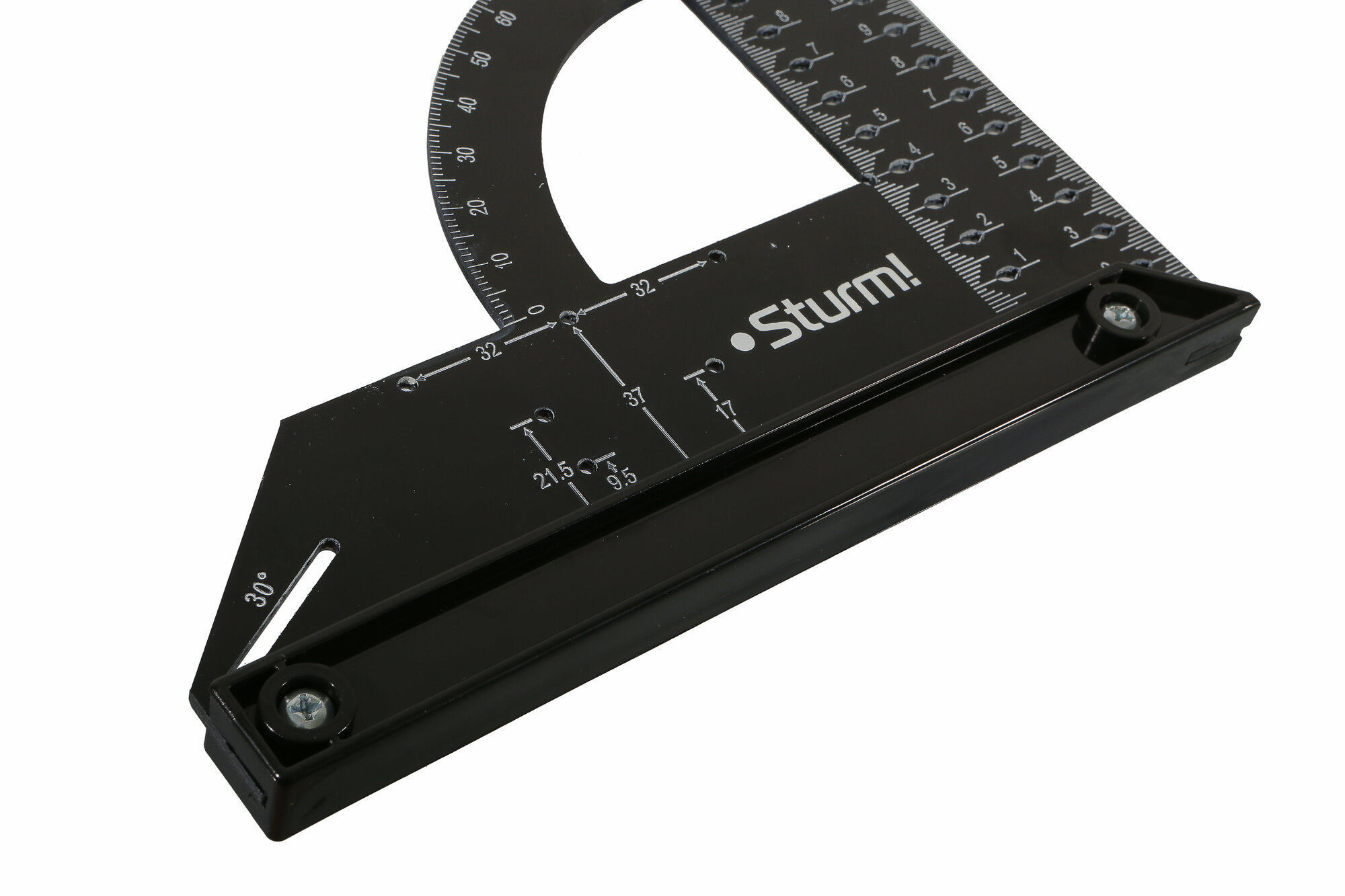 Угольник 170мм, алюминиевый сплав, чёрная оксидация, белая шкала, Sturm!