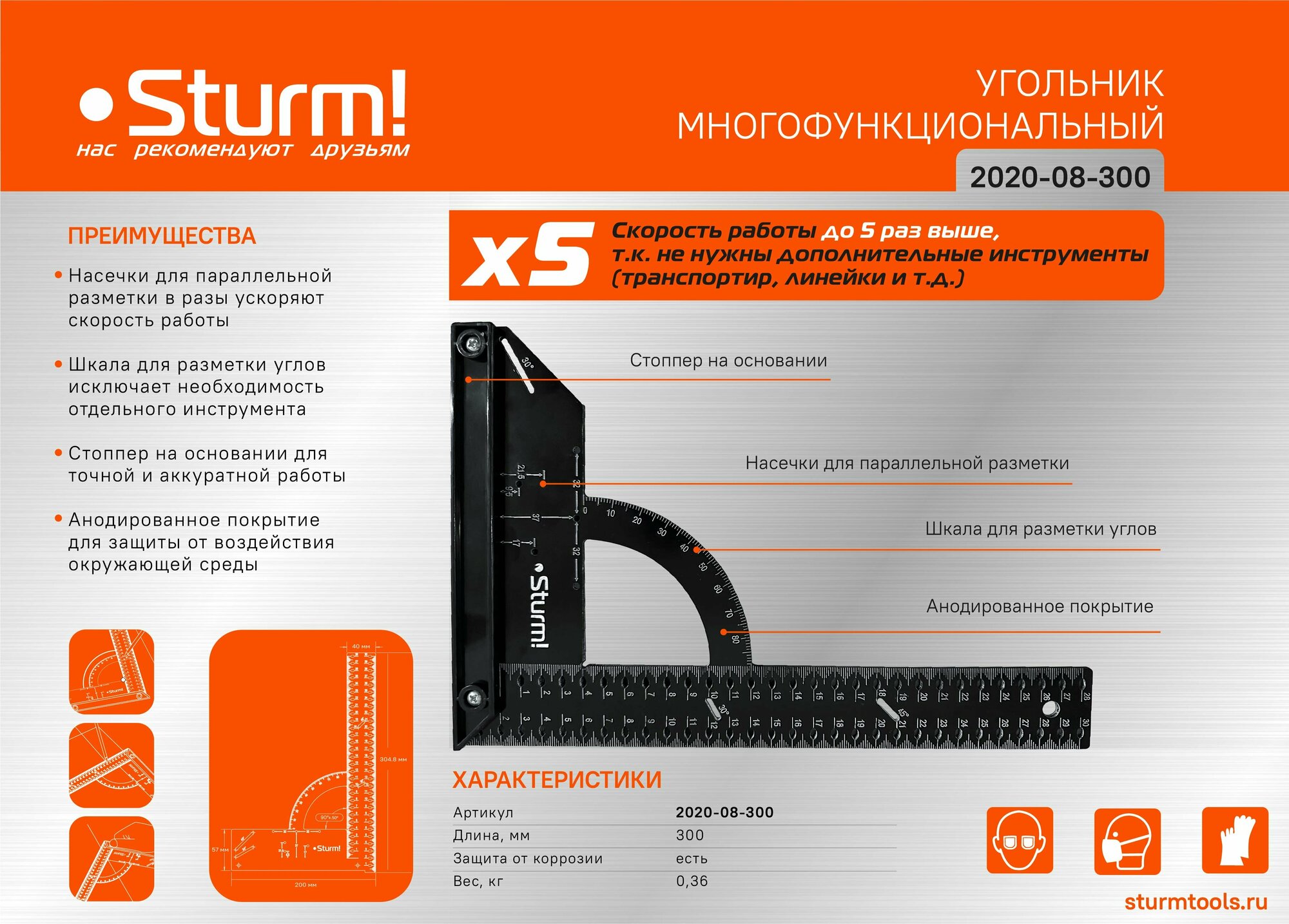 Многоцелевой угольник 230x500мм, Sturm!