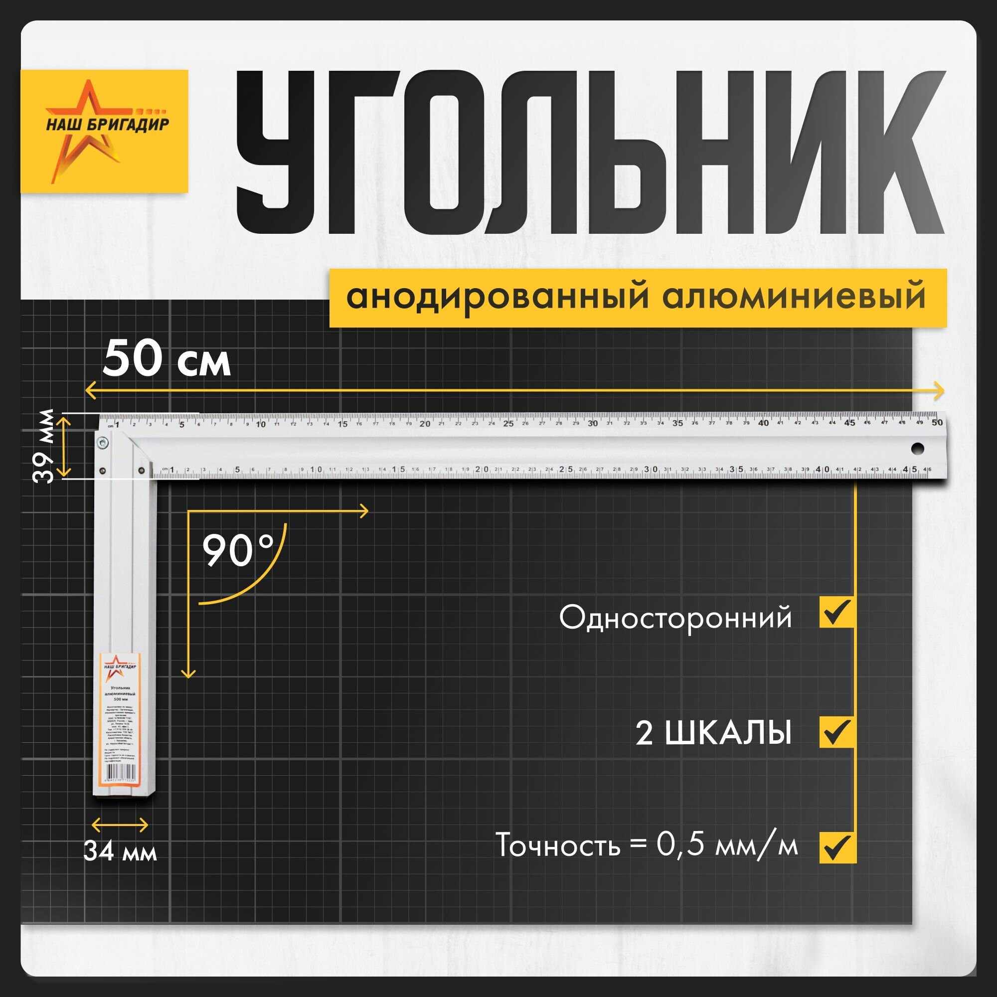 Угольник строительный металлический, 50 см, алюминиевый, Наш Бригадир интересное: