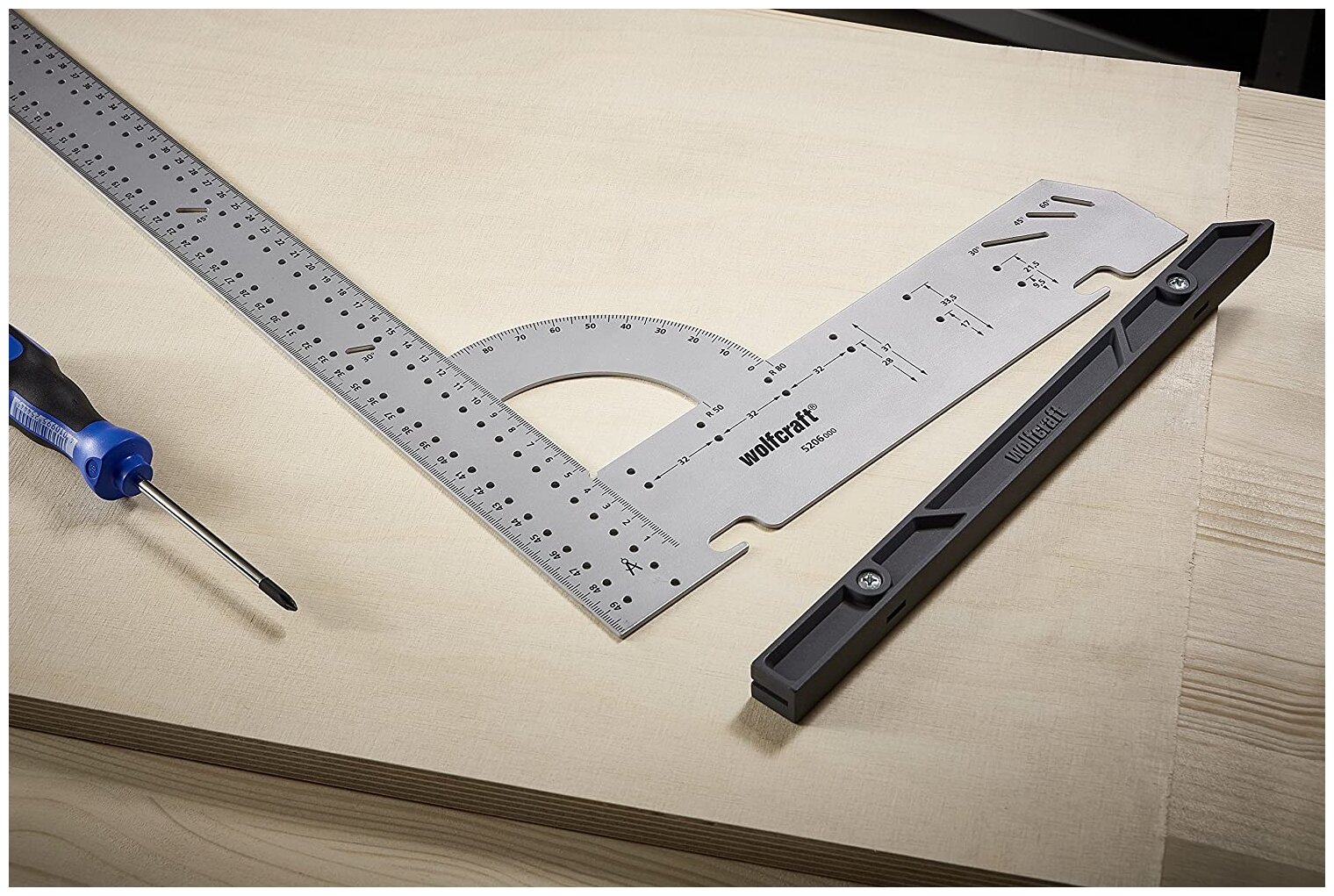 Купить Угольник разметочный Wolfcraft 5205000, многофункциональный, 200х300 мм, 90 Wolfcraft 3889036 .