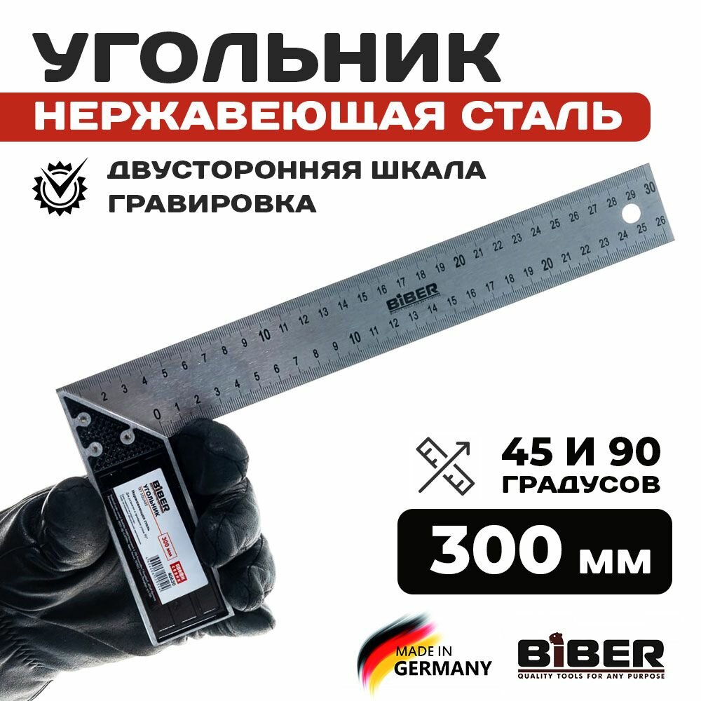 Угольник строительный 300 мм металлический сталь Профи, столярный с гравировкой интересное: