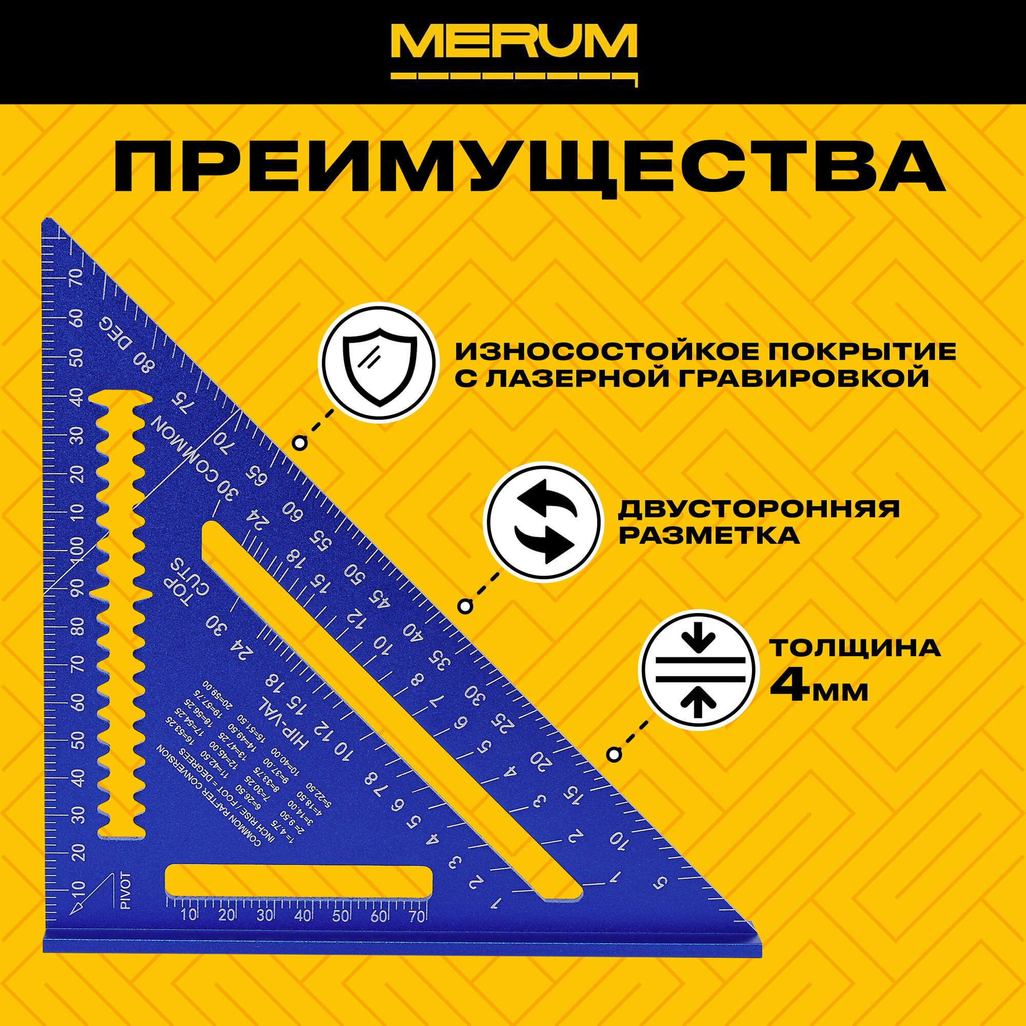 Угольник Свенсона, MERUM, метрическая шкала, столярный, двусторонняя разметка, 18 см, синий интересное: