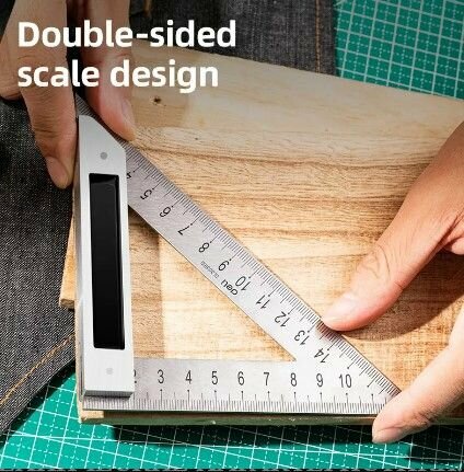 Треугольная линейка стальная Deli DL303200 200мм Нержавеющая сталь + алюминиевое основание