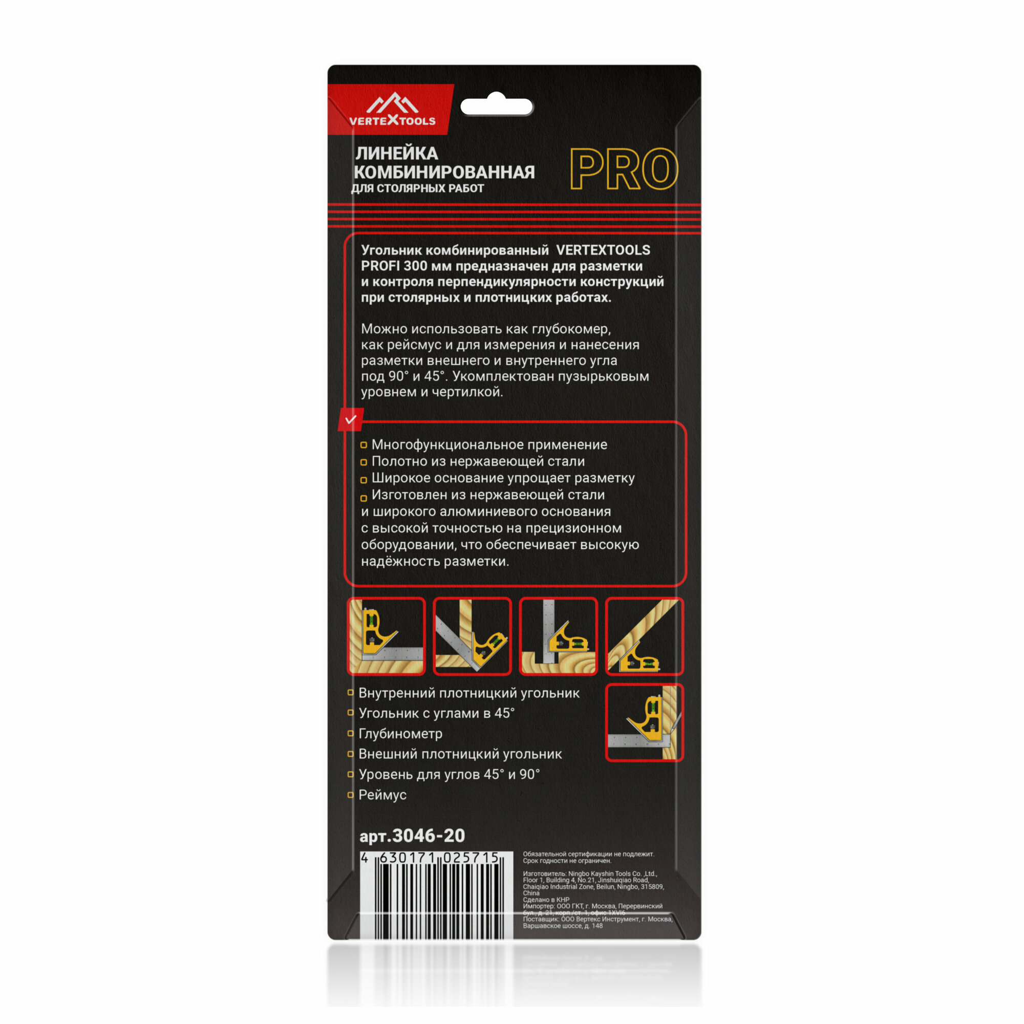 Угольник столярный разметочный VertexTools PRO 300 мм 6 в 1 металлический многофункциональный интересное:
