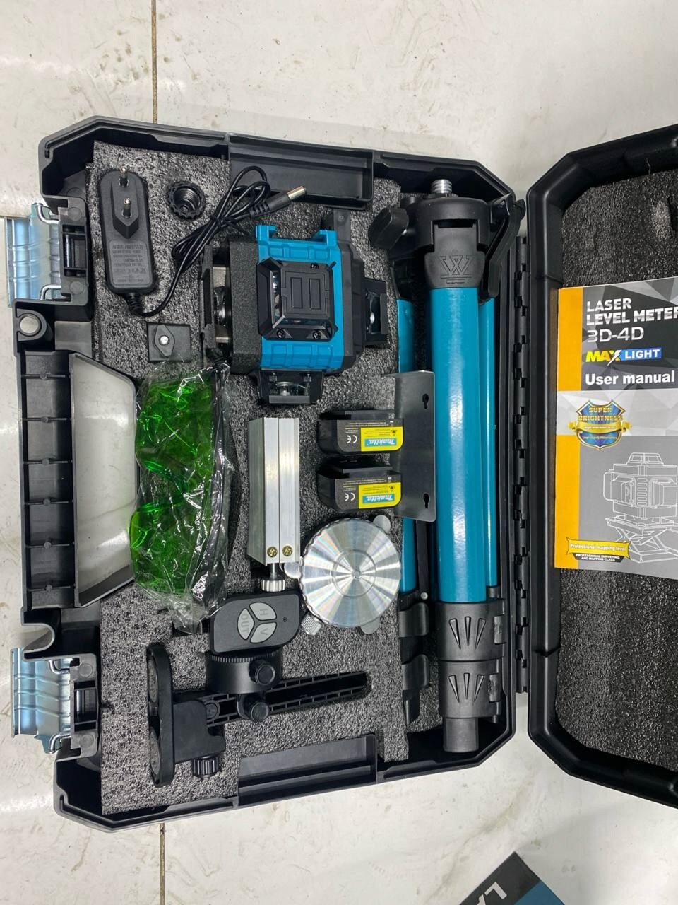 Лазерный нивелир, 4D, Штатив ,16 линий, 30м, зеленый луч, 12 элементов в комплекте интересное: