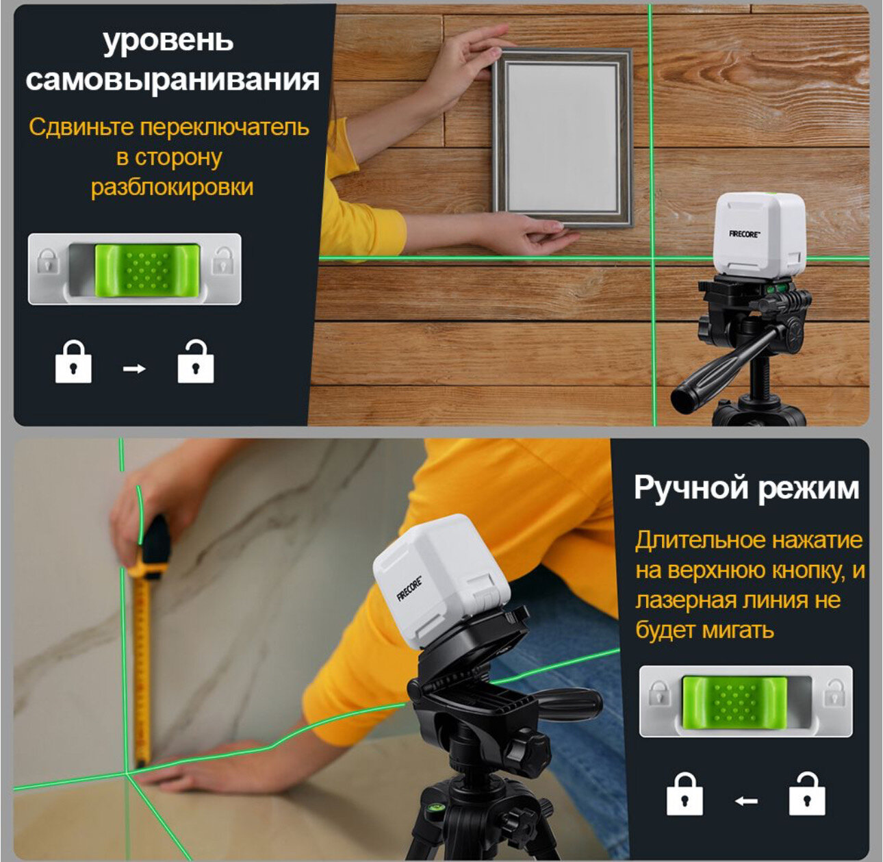 Лазерный уровень FIRECORE G-20, 2 линии ( зелёный луч) интересное: