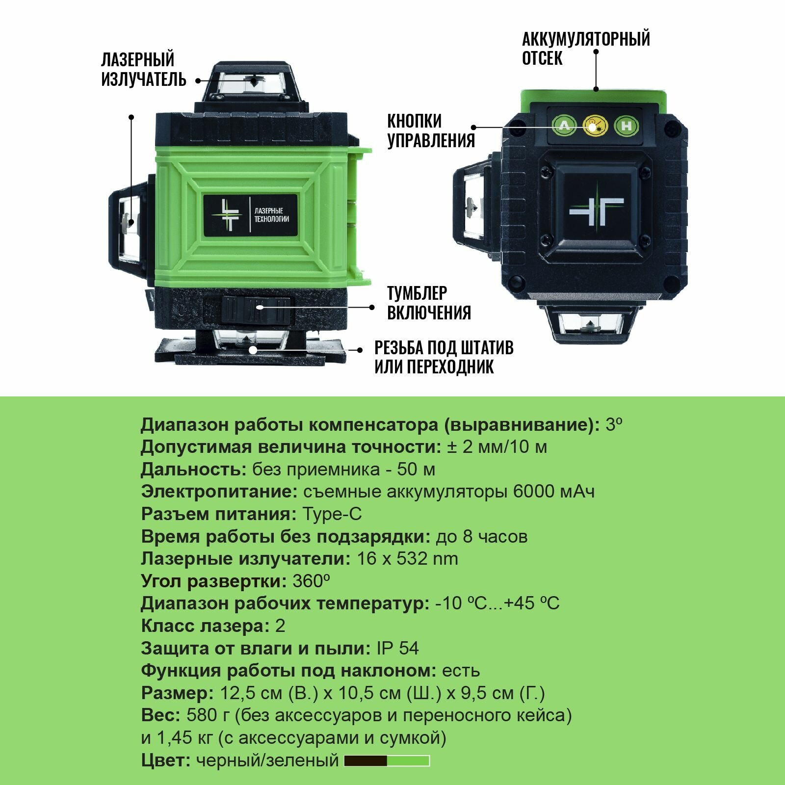 Профессиональный Лазерный уровень (нивелир) LT серии A 4D 16 линий С японскими светодиодами SHARP + Тренога 1 метр интересное: