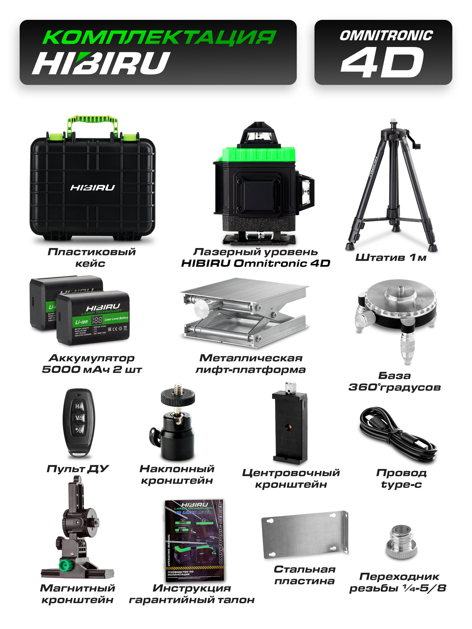 Лазерный уровень 4D HIBIRU Omnitronic 4360(нижний и верхний горизонт) штатив в комплекте интересное:
