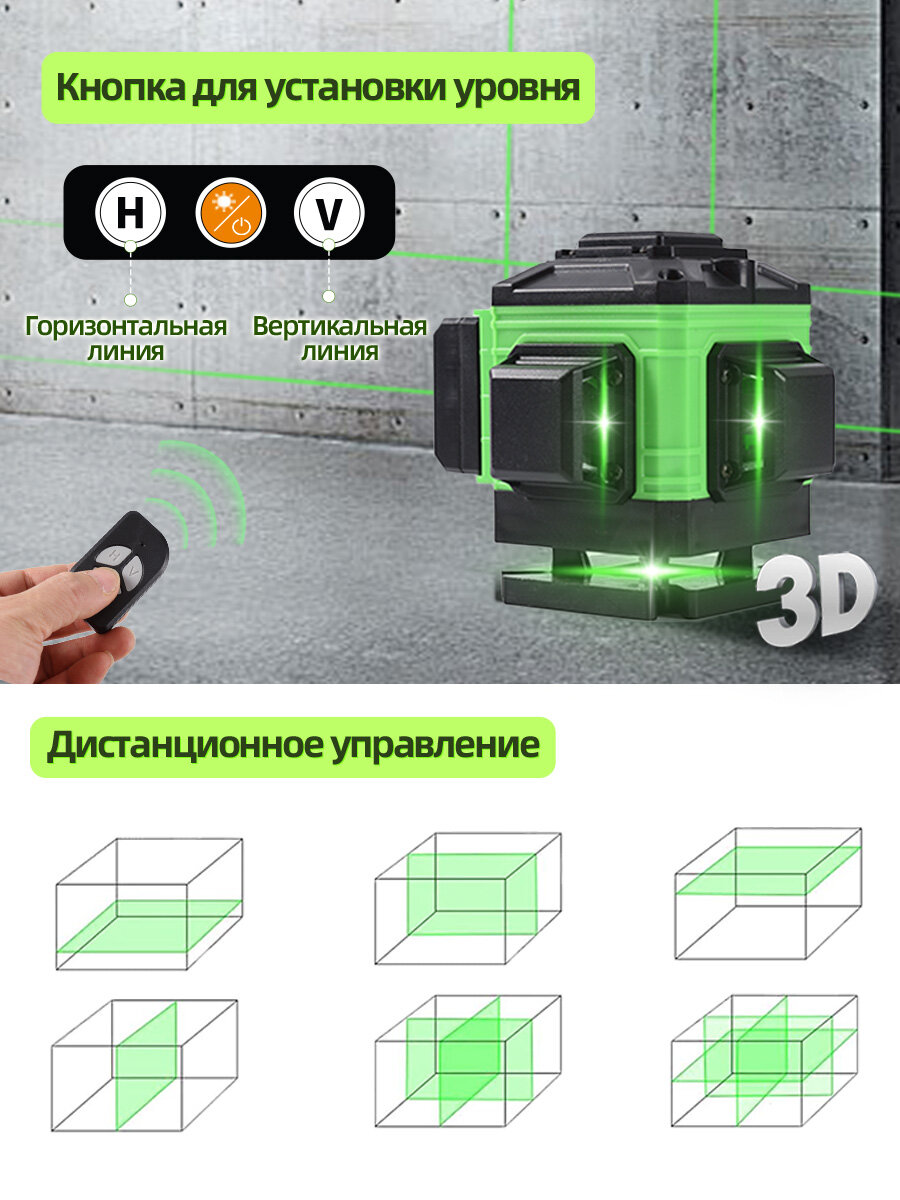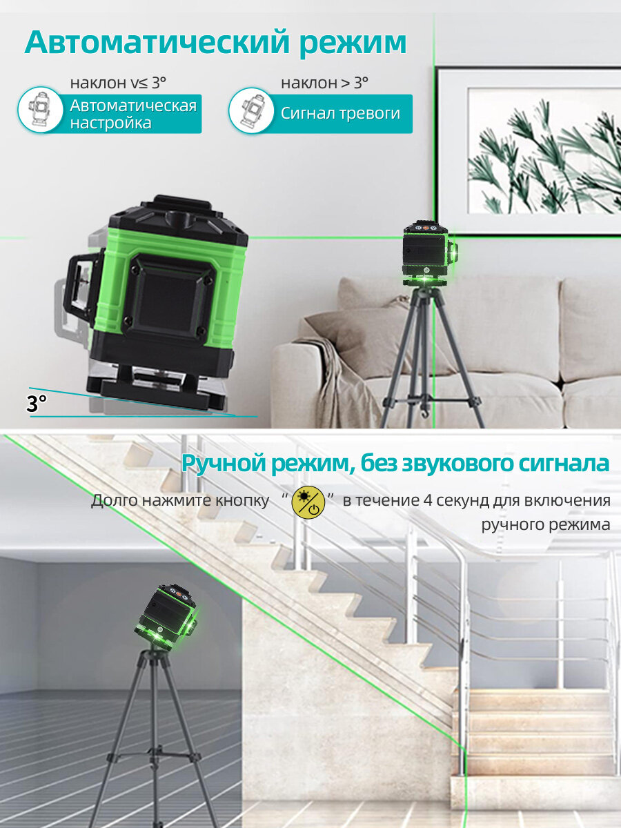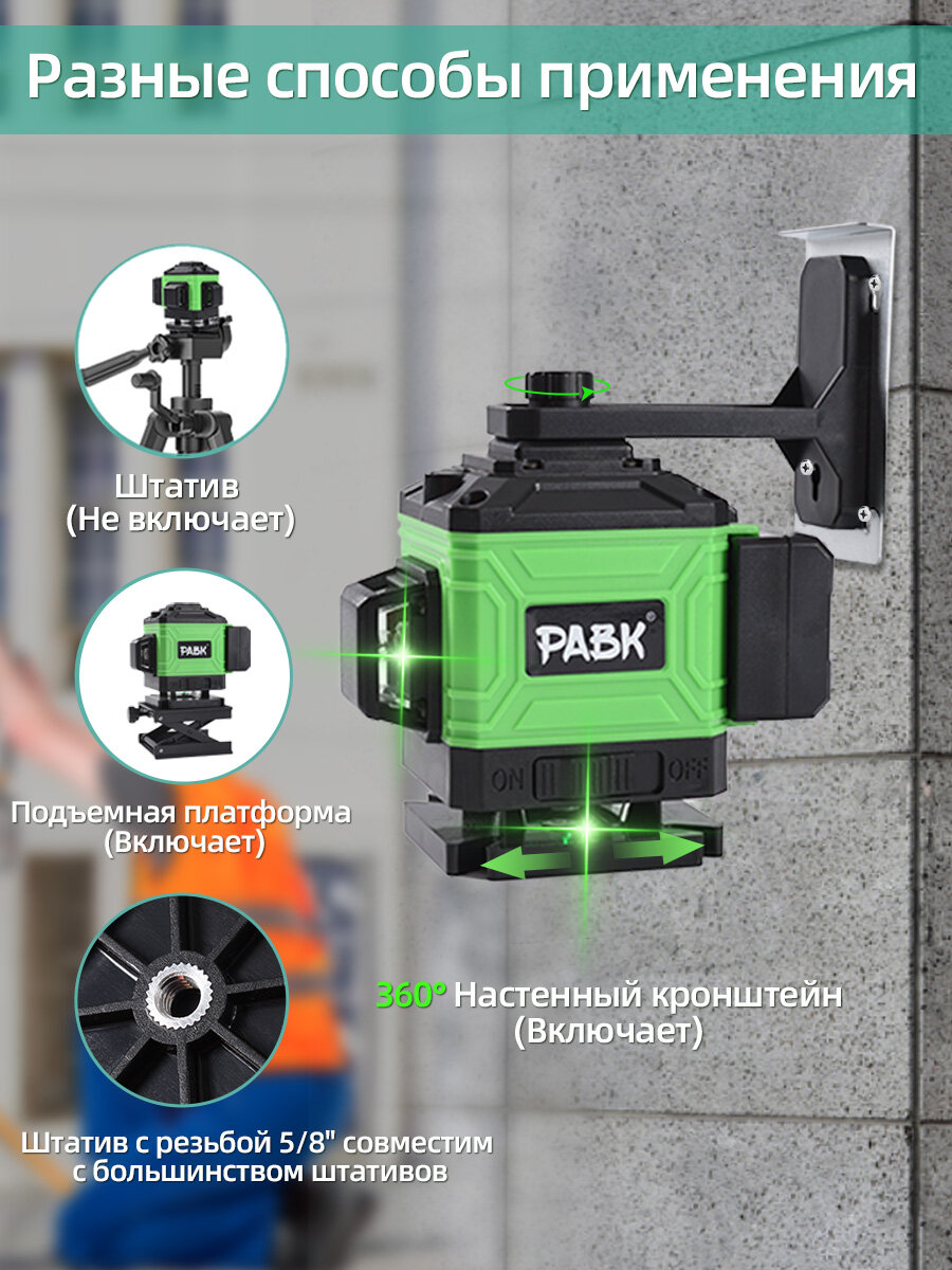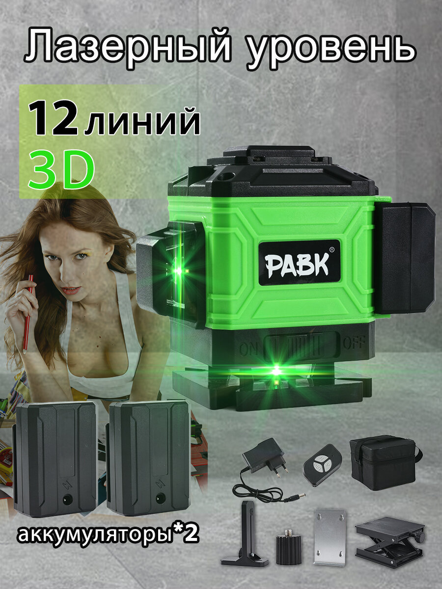 Лазерный нивелир PABK, 3D, 12 лучей, зеленый цвет, с подставкой интересное: