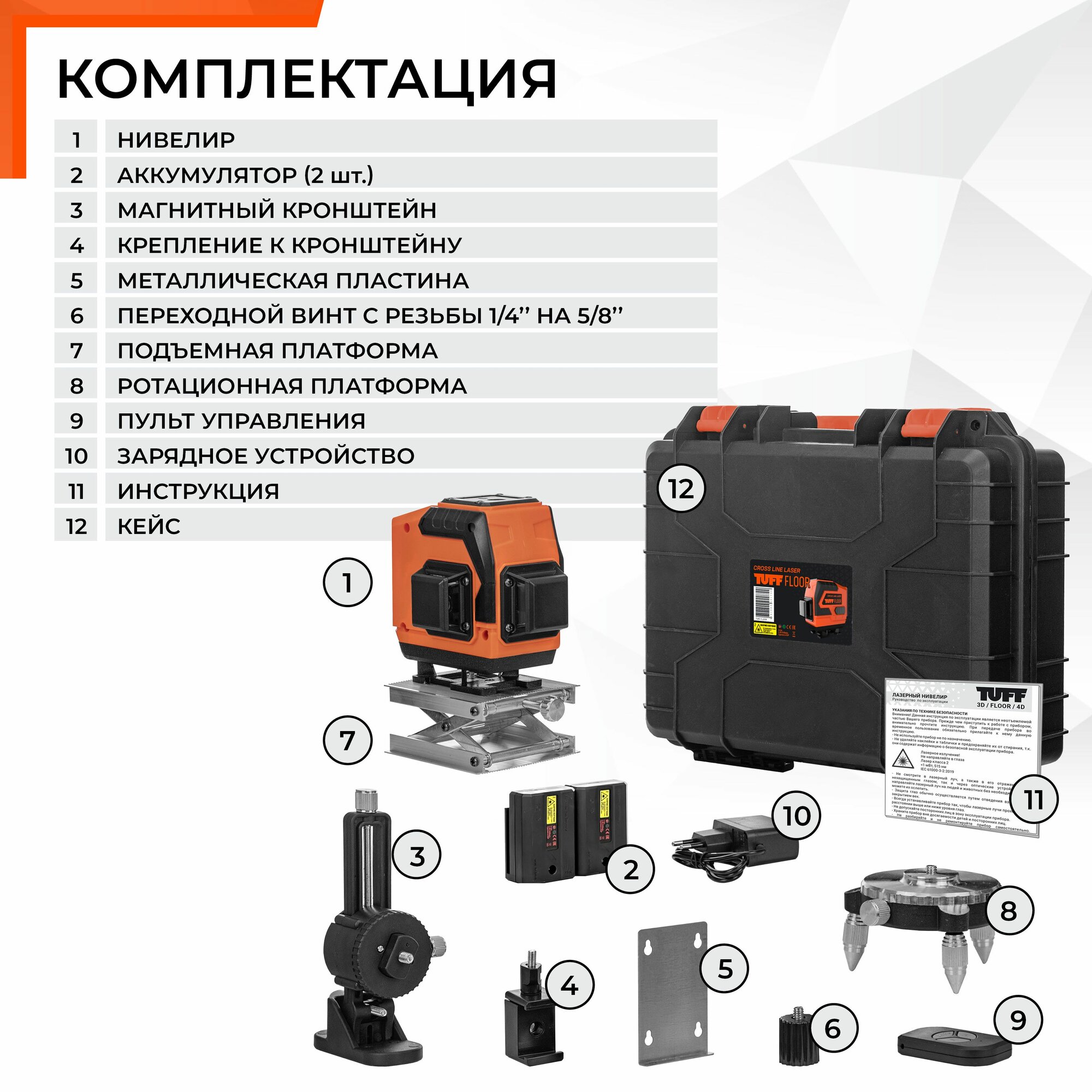 Лазерный уровень / нивелир 3 луча 12 линий 360 градусов TUFF FLOOR, зеленый луч интересное: