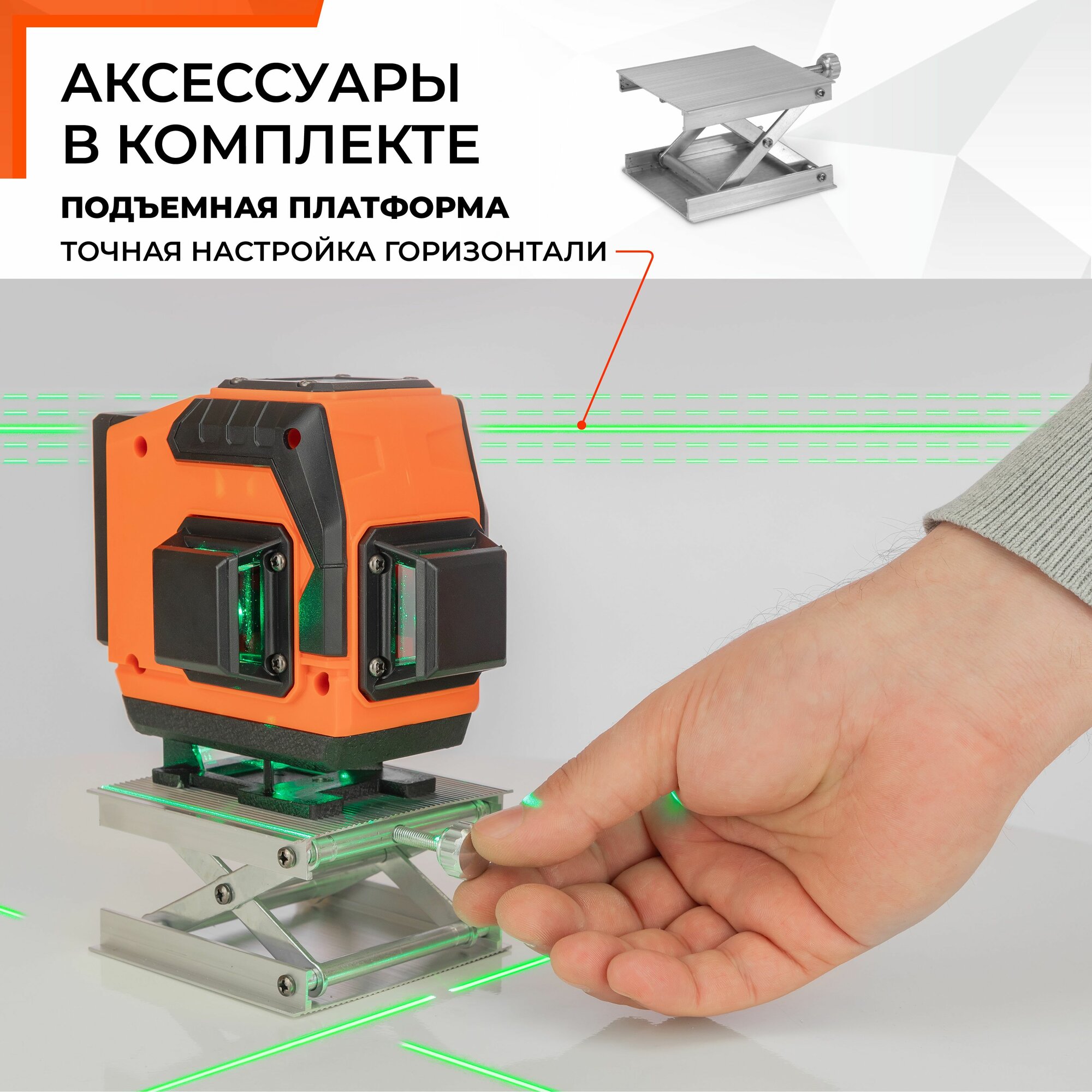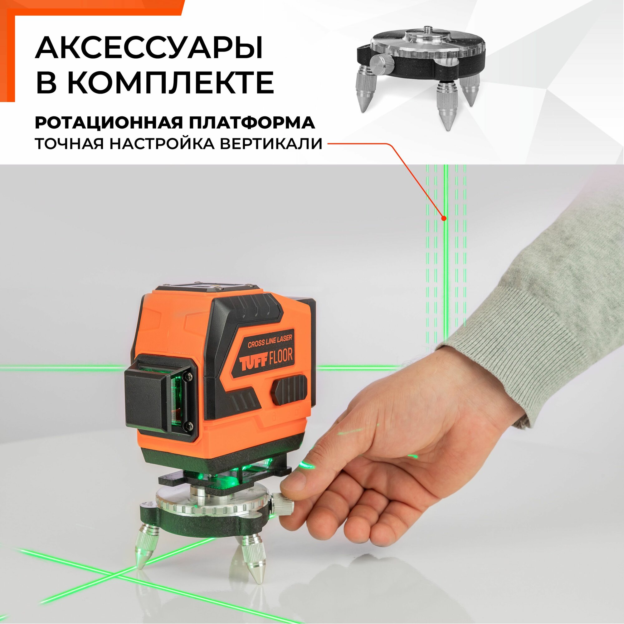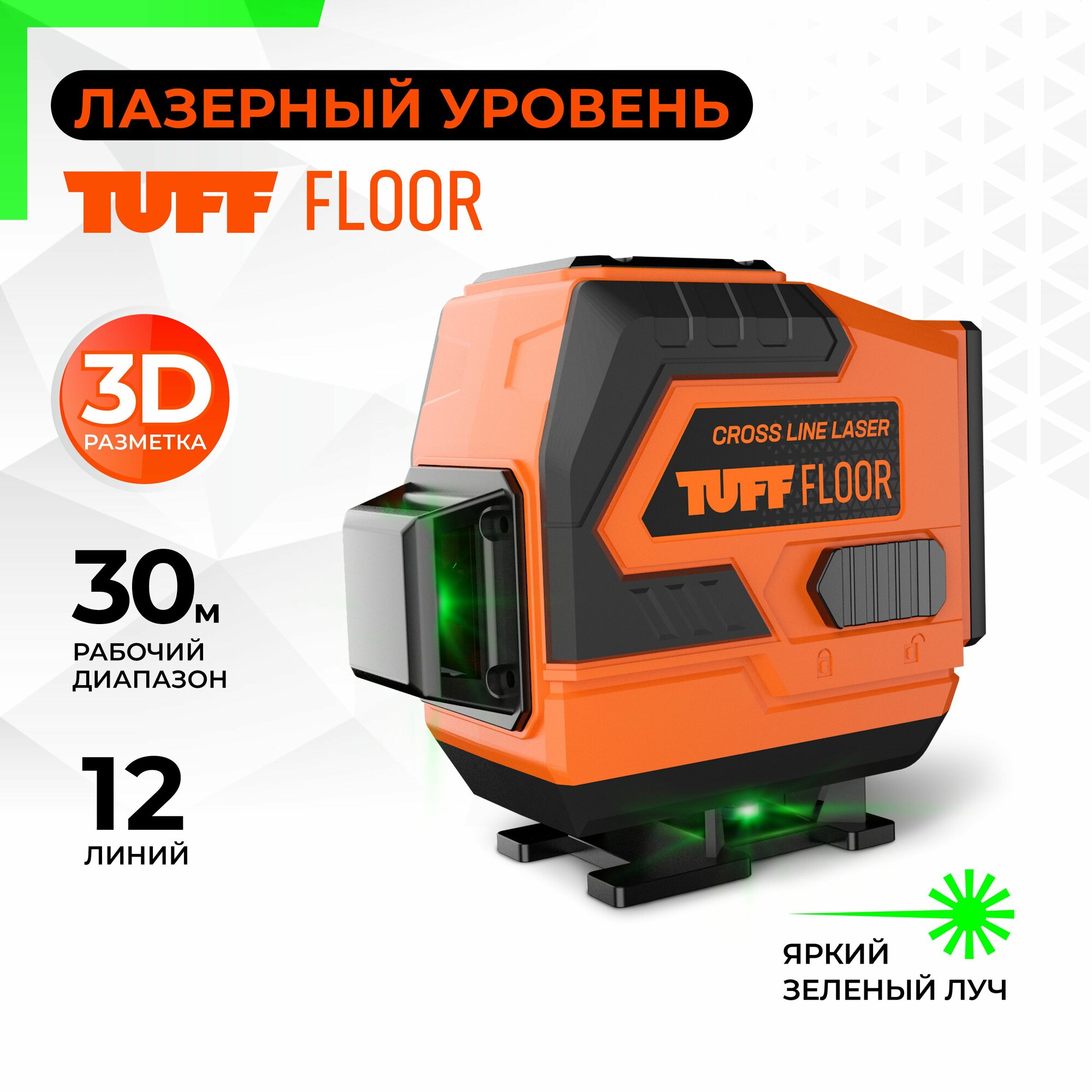 Купить Лазерный уровень / нивелир 3 луча 12 линий 360 градусов TUFF FLOOR, зеленый луч
