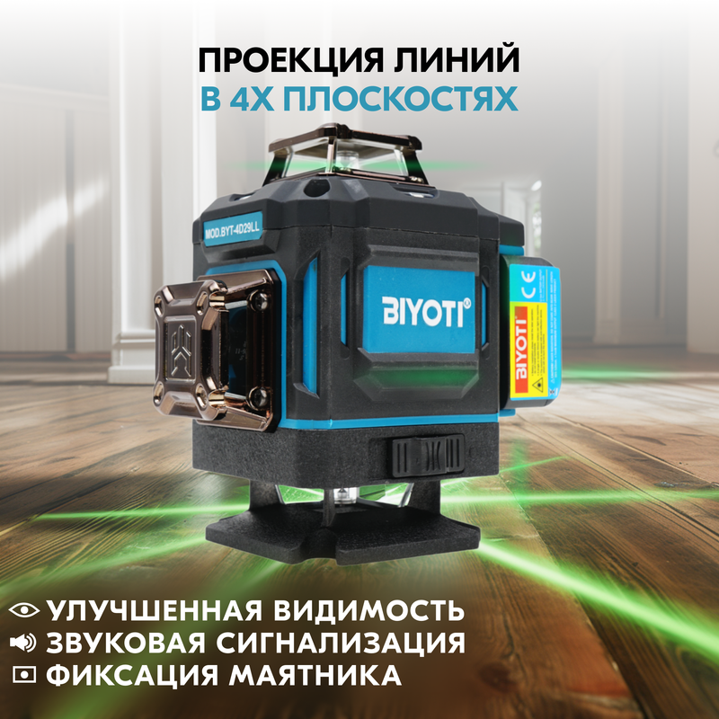 Лазерный уровень BIYOTI нивелир 360 4D/16 линий + тренога 130см интересное: