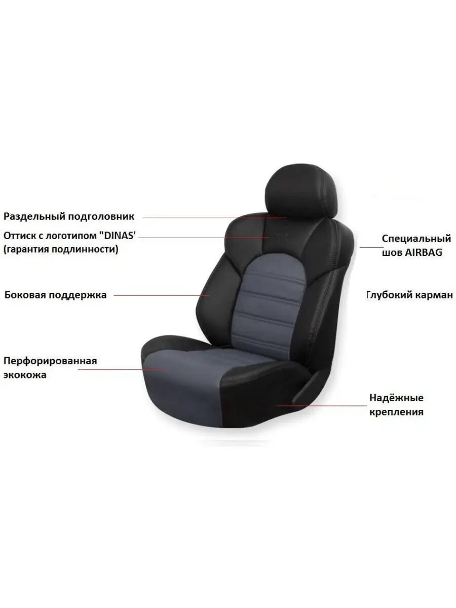 Чехлы на сиденья Comfort из экокожи черно-серые Dinas интересное: