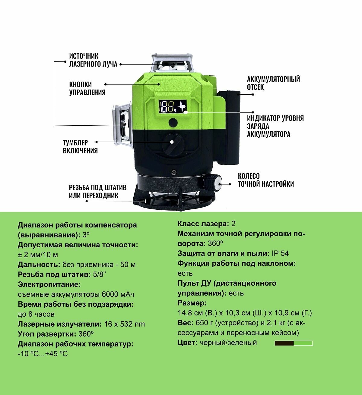 Профессиональный Лазерный уровень (нивелир) LT серии S 4D 16 линий С японскими светодиодами SHARP + Тренога 1 метр интересное: