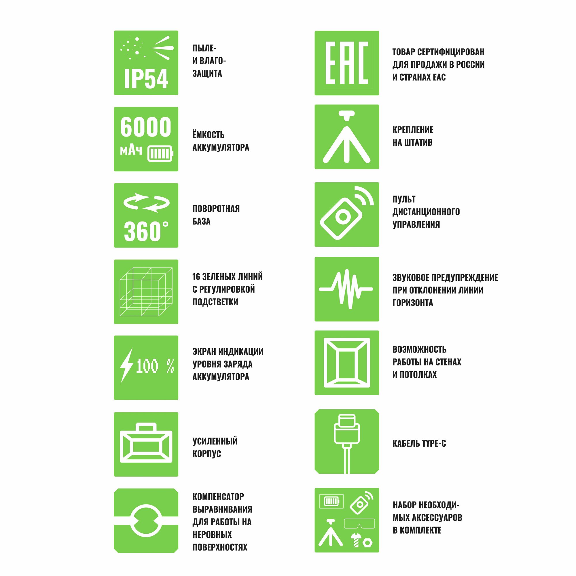 Профессиональный Лазерный уровень (нивелир) LT L16-360A 4D 16 линий.