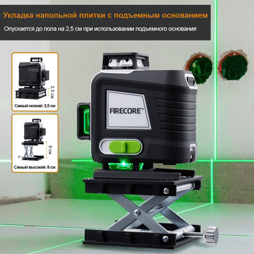 Лазерный уровень/нивелир FIRECORE G60, 4D 16 Линий, Зеленый луч интересное: